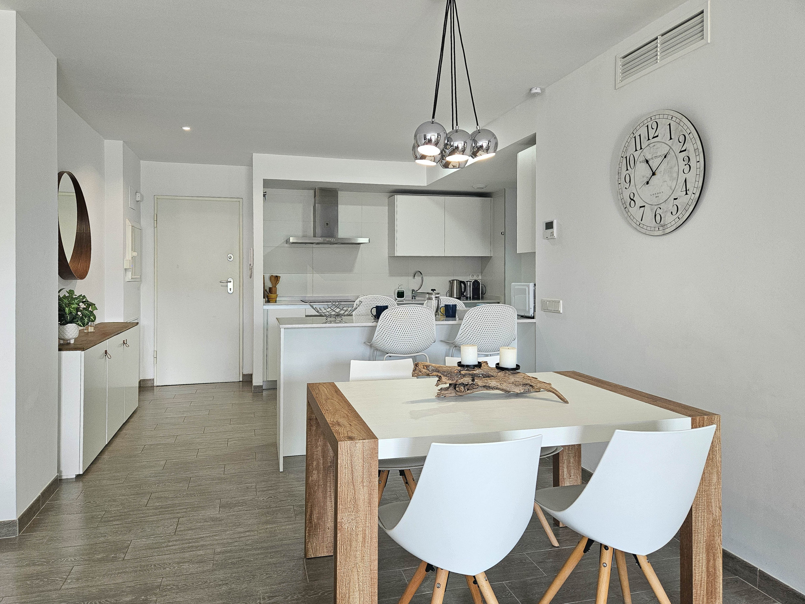 Set within a secure gated complex, the apartment includes an allocated parking space, free WiFi and hot & cold air conditioning throughout. Guests can enjoy the large fenced communal pool and children’s play area, surrounded by well-kept gardens.