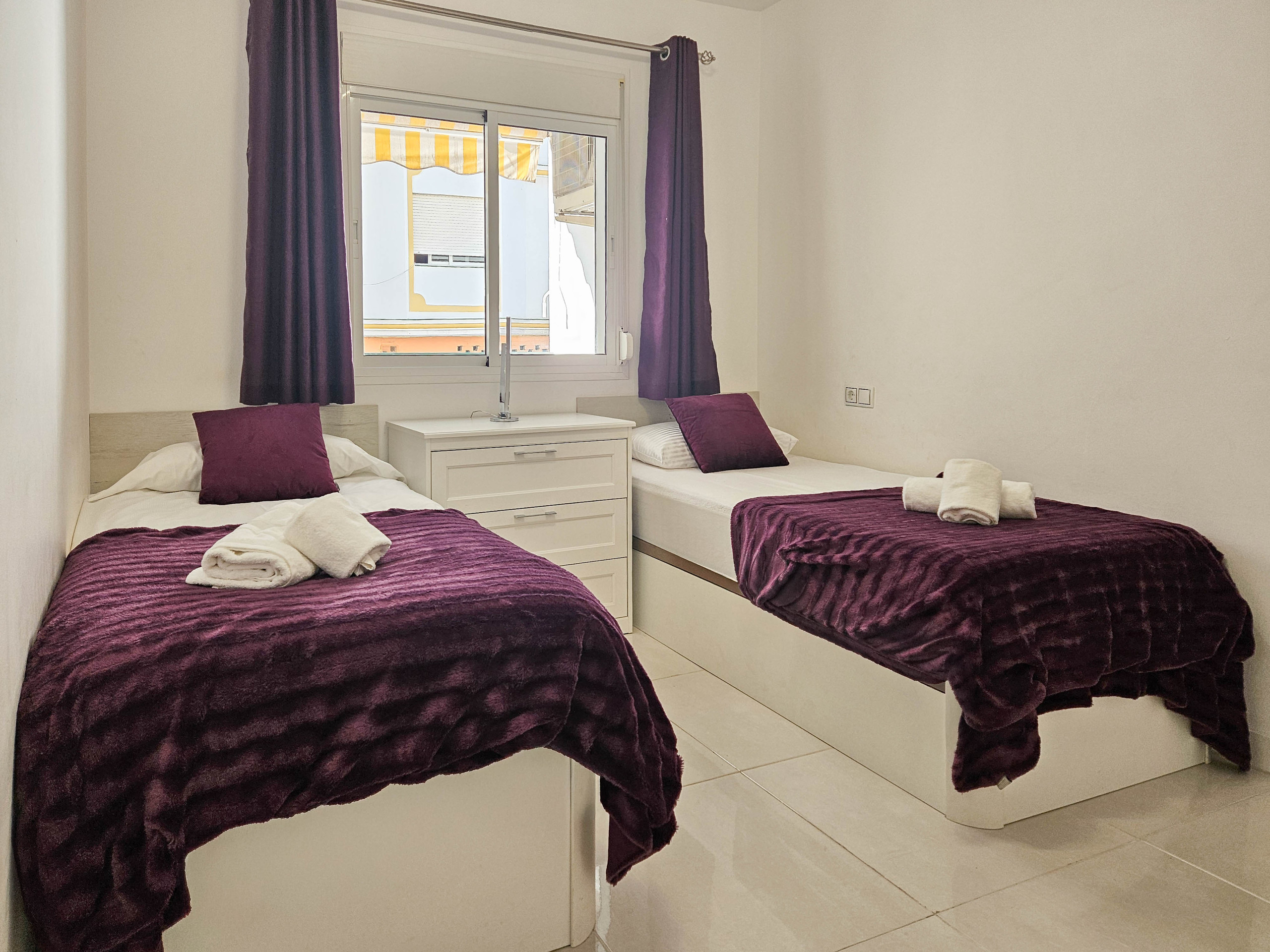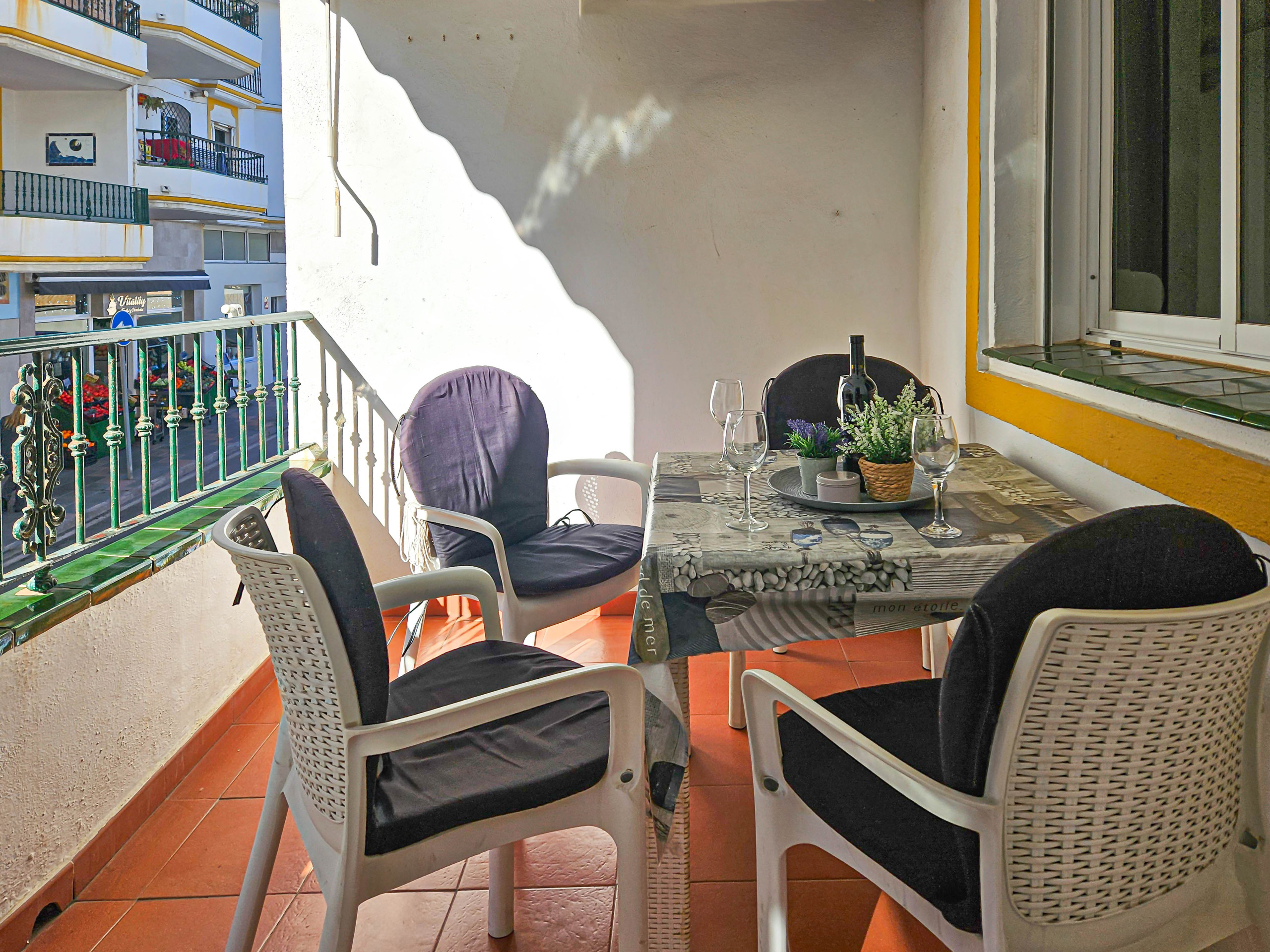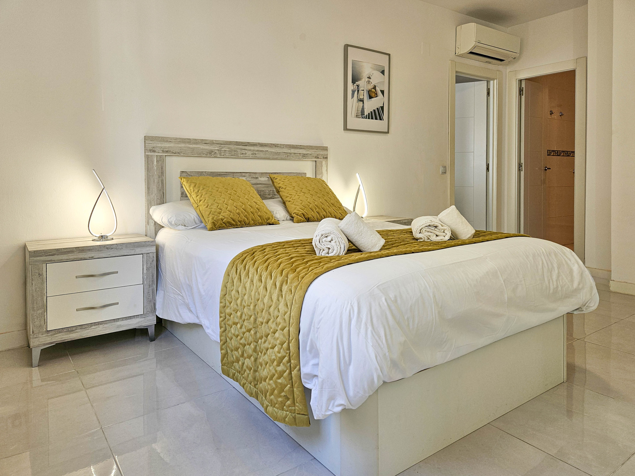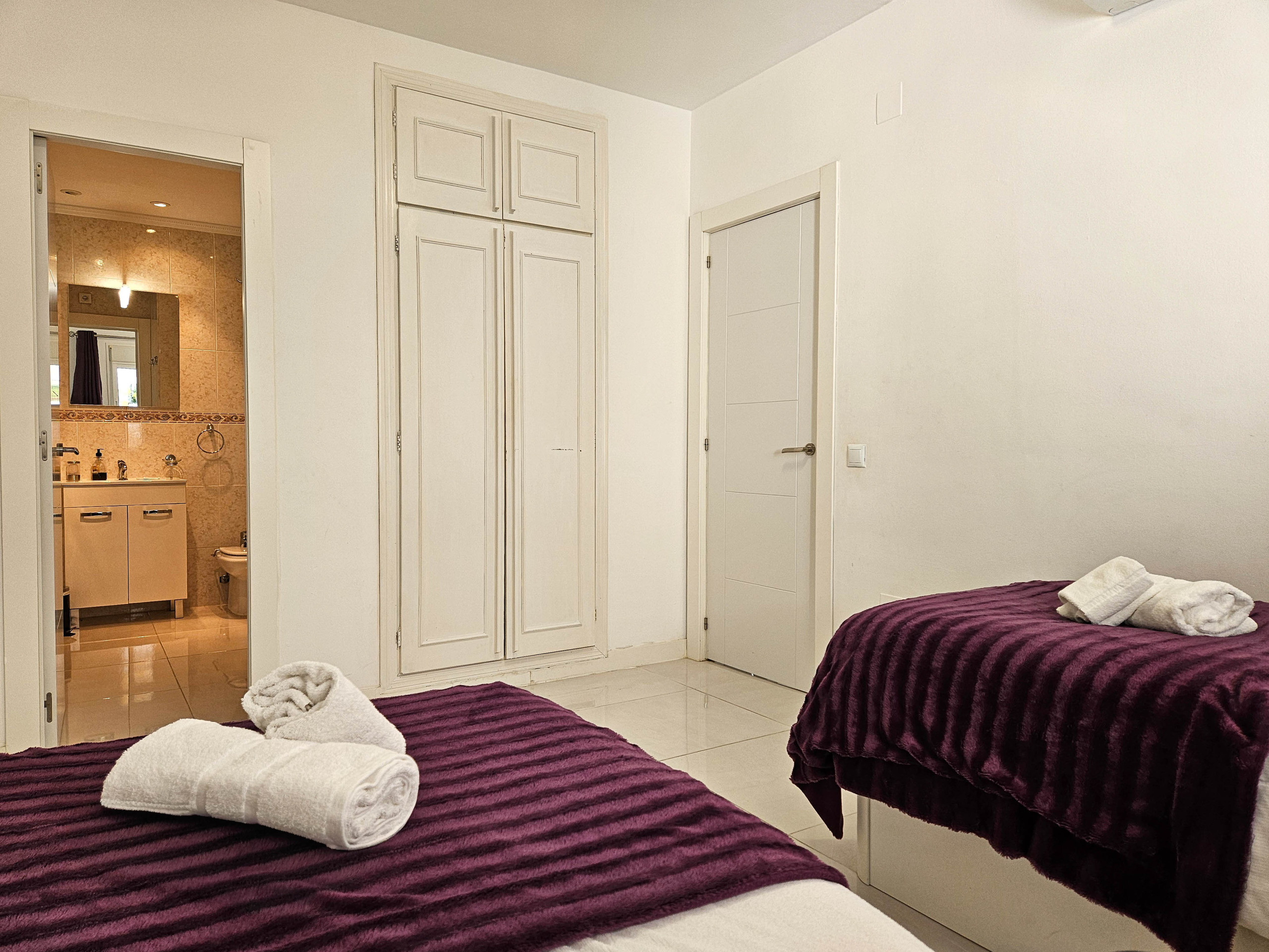 The apartment is fully equipped with shutters throughout, air conditioning in both the lounge and bedrooms, and free Wi-Fi.