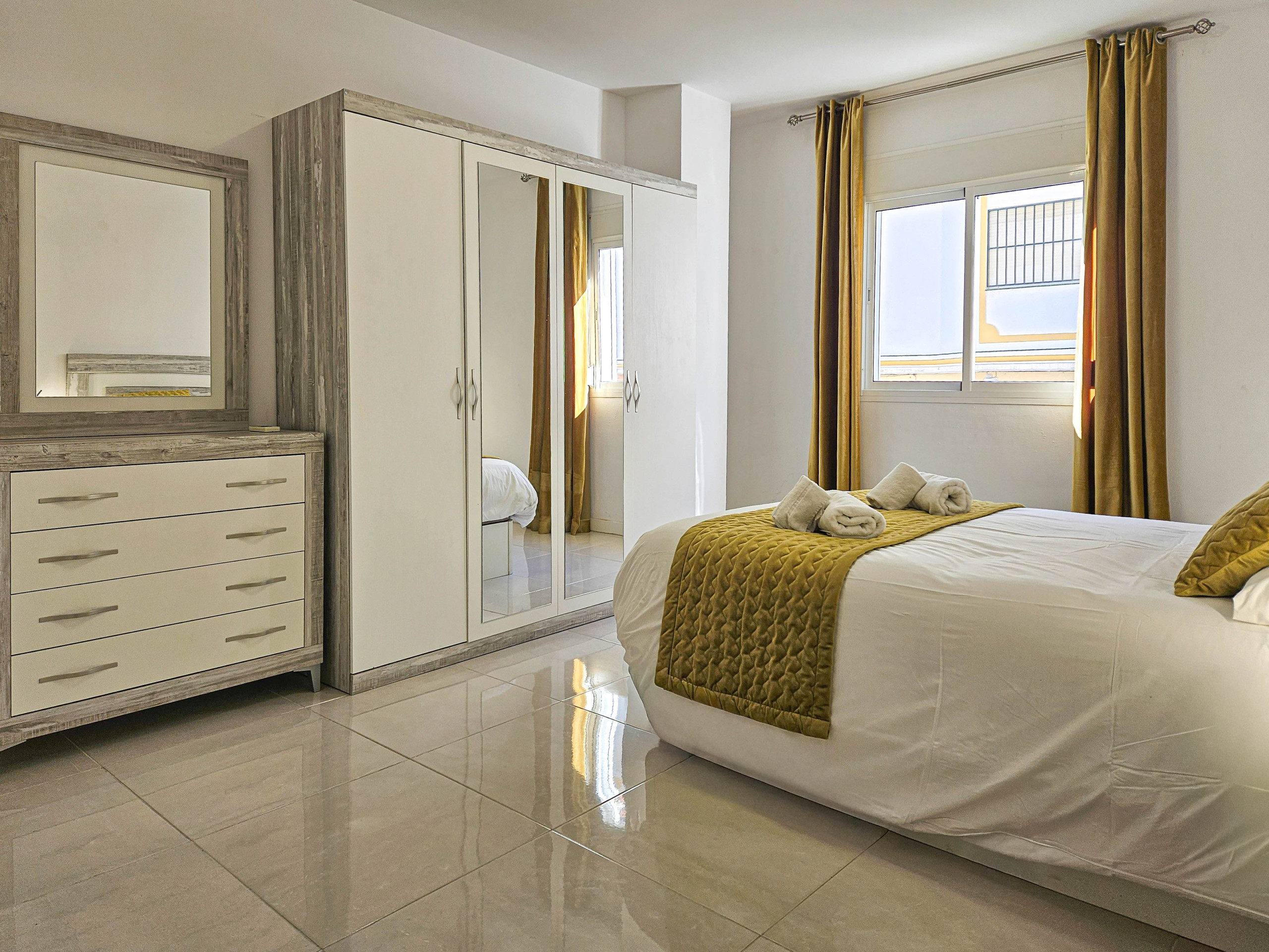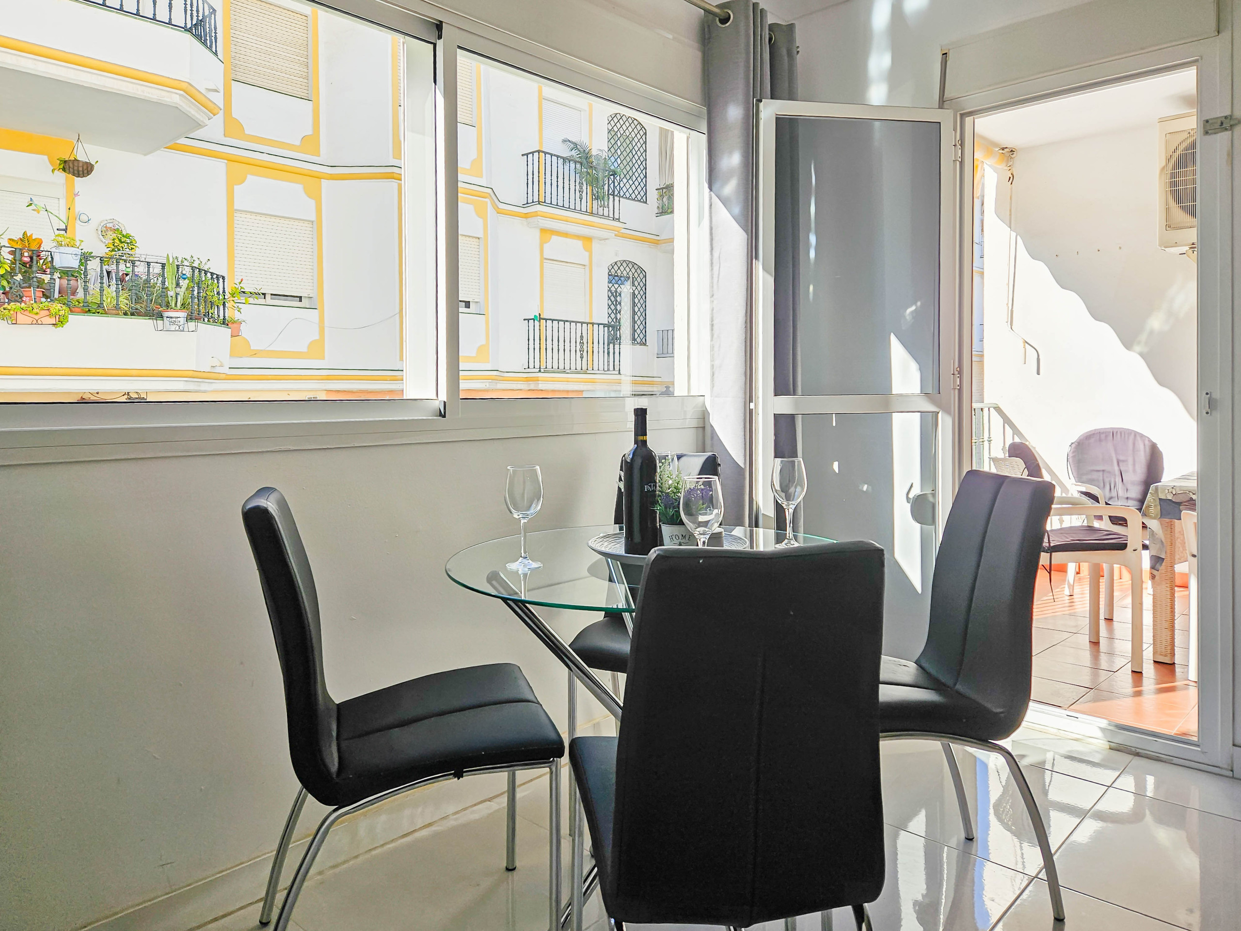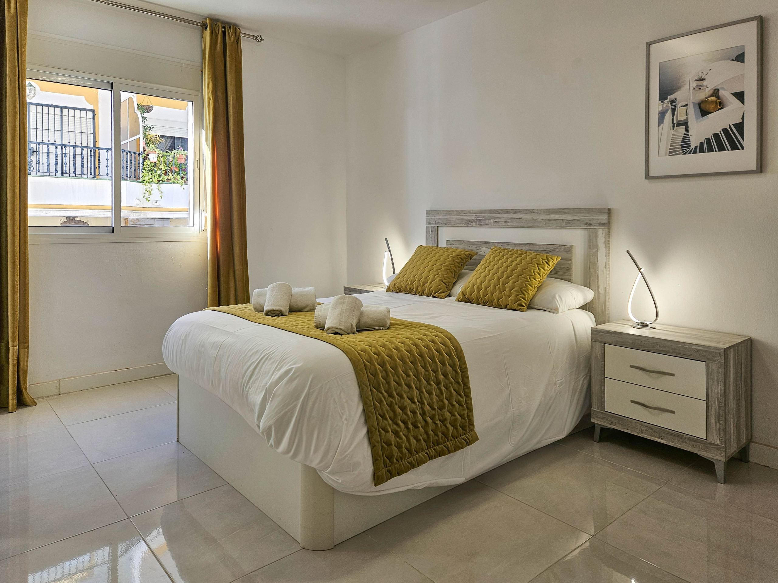 The apartment is fully equipped with shutters throughout, air conditioning in both the lounge and bedrooms, and free Wi-Fi.