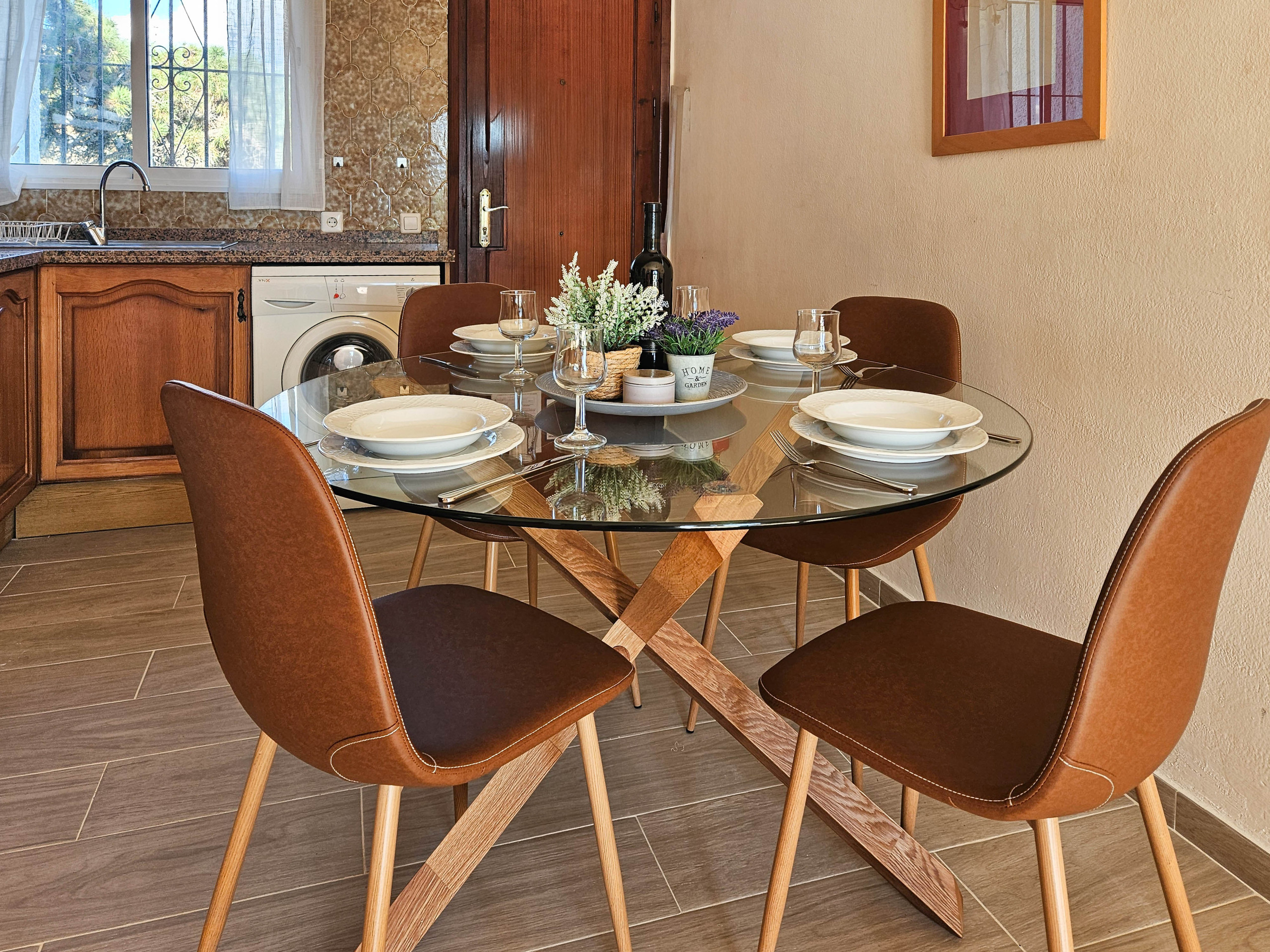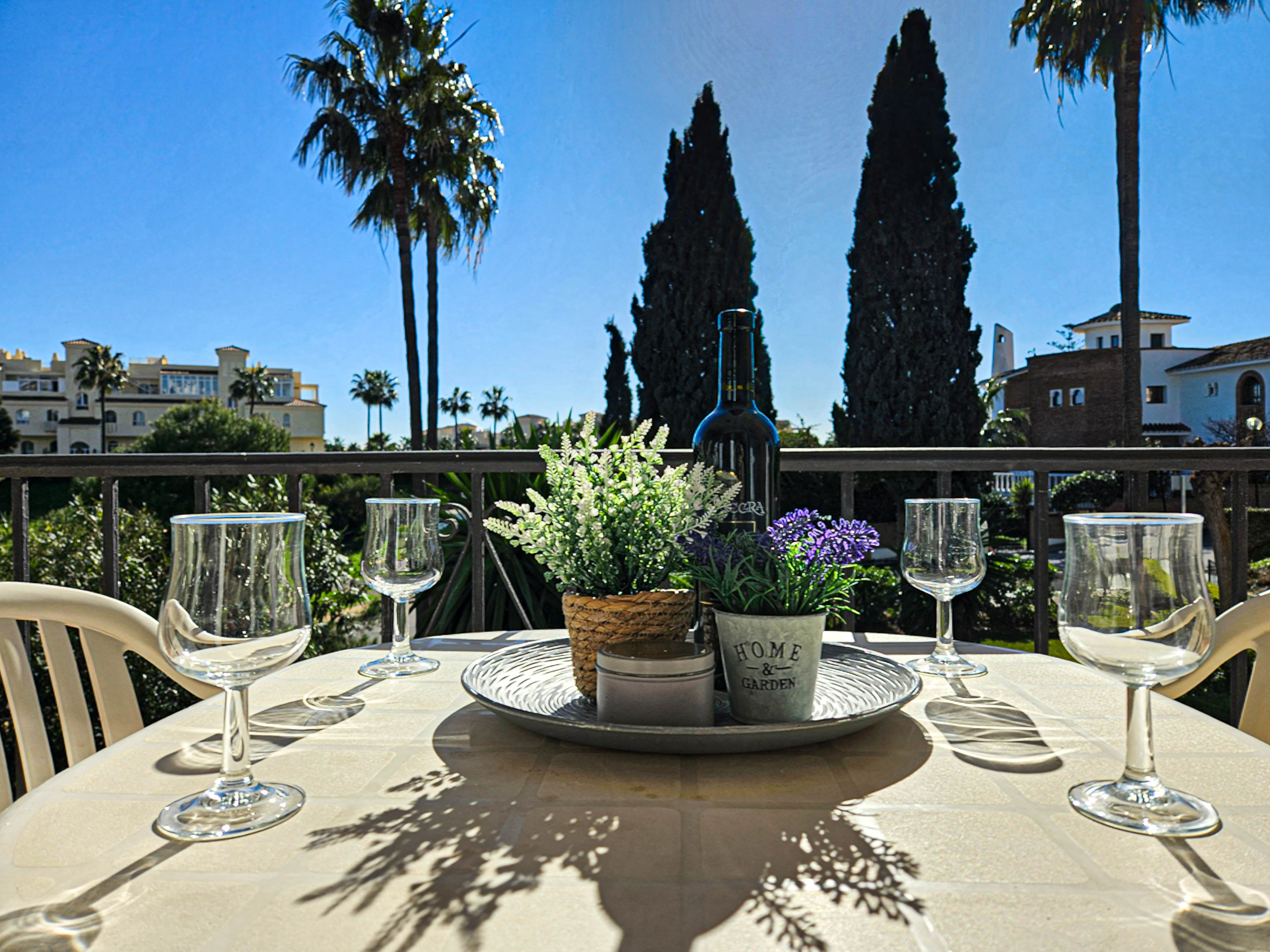 The apartment is located on the first floor with access by stairs and is arranged over one level. The open plan living space benefits from a well equipped kitchen. There is a dining seating area and the lounge area offers two sofas and a TV with International channels. From the dining area, access the private covered terrace to enjoy the dining seating area. From sunrise to sunset, take in the breath taking sea views.