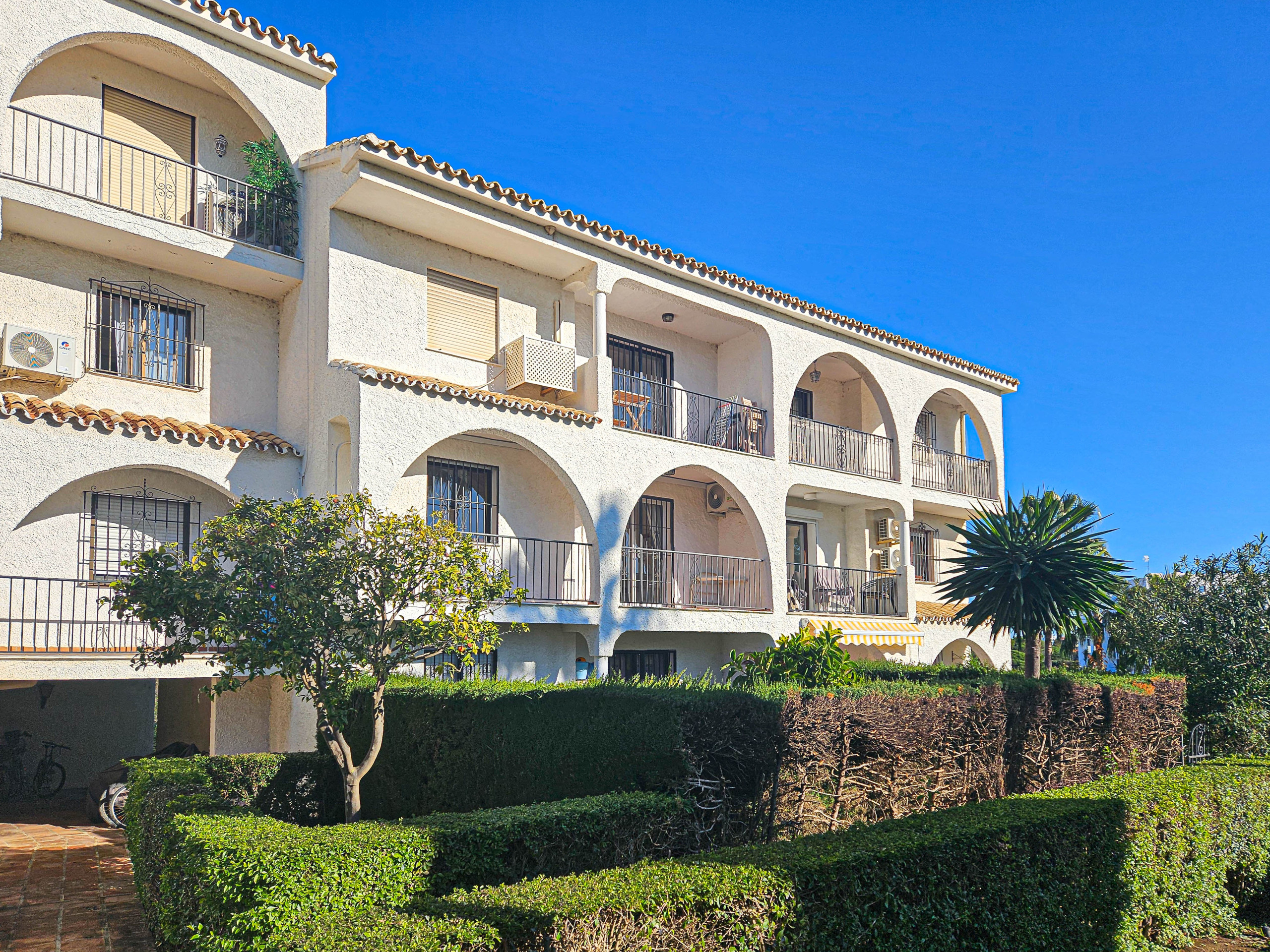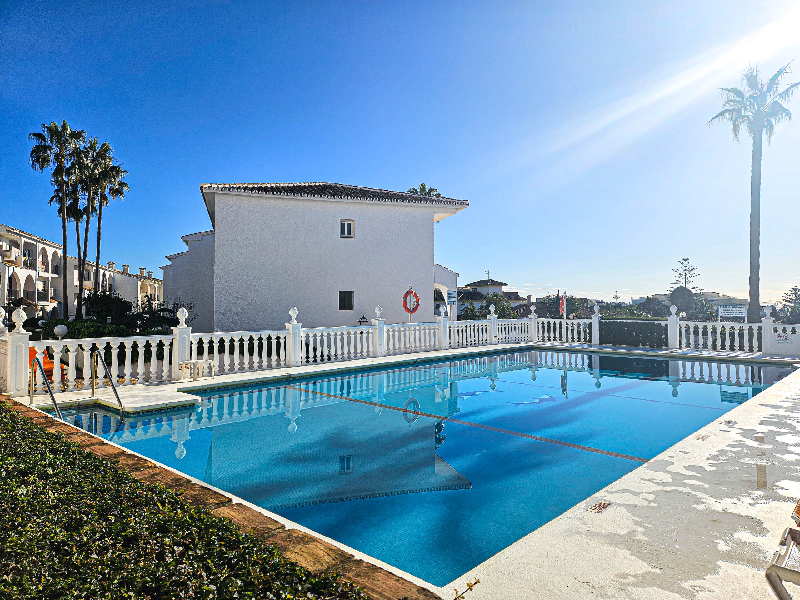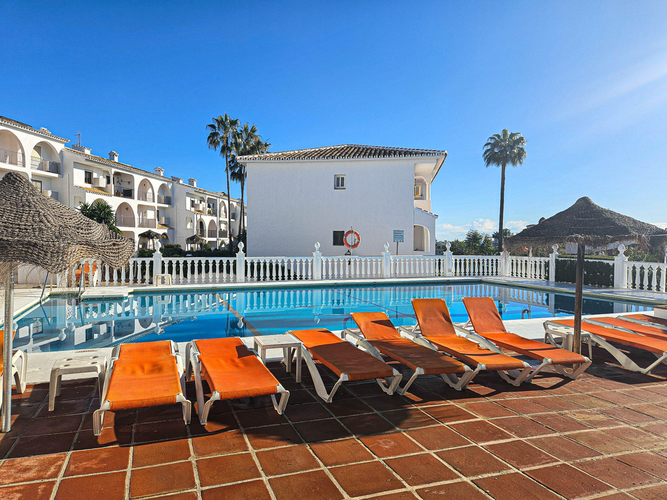 This charming two bedroom apartment is located in the Colinas del Mar complex in Riviera del Sol. Set back in the hills of Riviera, the apartment enjoys uninterrupted sea views. The secure gated complex offers two communal pools, one with a separate children's pool and a tennis court. There is also an open carpark. The beach and a selection of restaurants, bars and shops are all within a 1km distance. Miraflores Golf Club is under 2km away. The apartment offers hot & cold vented aircon throughout and free WIFI.