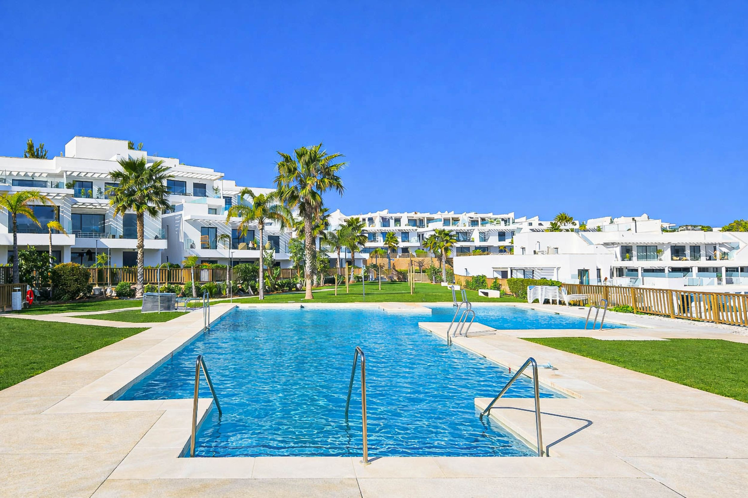 This modern three-bedroom apartment is located in the beautiful residential complex of Casa Banderas in La Cala de Mijas. The secure gated complex offers excellent facilities including three communal outdoor swimming pools (one with a disabled chair lift), a paddle tennis court, a children’s play area, an indoor gym and spa open from 8am to 9pm, and outdoor sports machines. Guests can book the paddle tennis court or gym through the concierge. The complex is conveniently situated just 1.5 km from the beach and the town’s amenities, with the nearest supermarket only 1 km away and La Noria Golf Course approximately 3 km away.