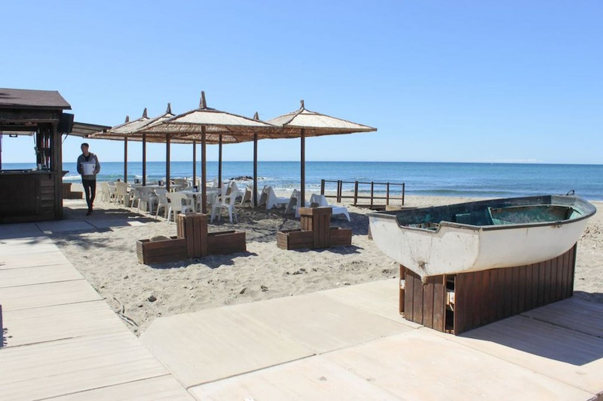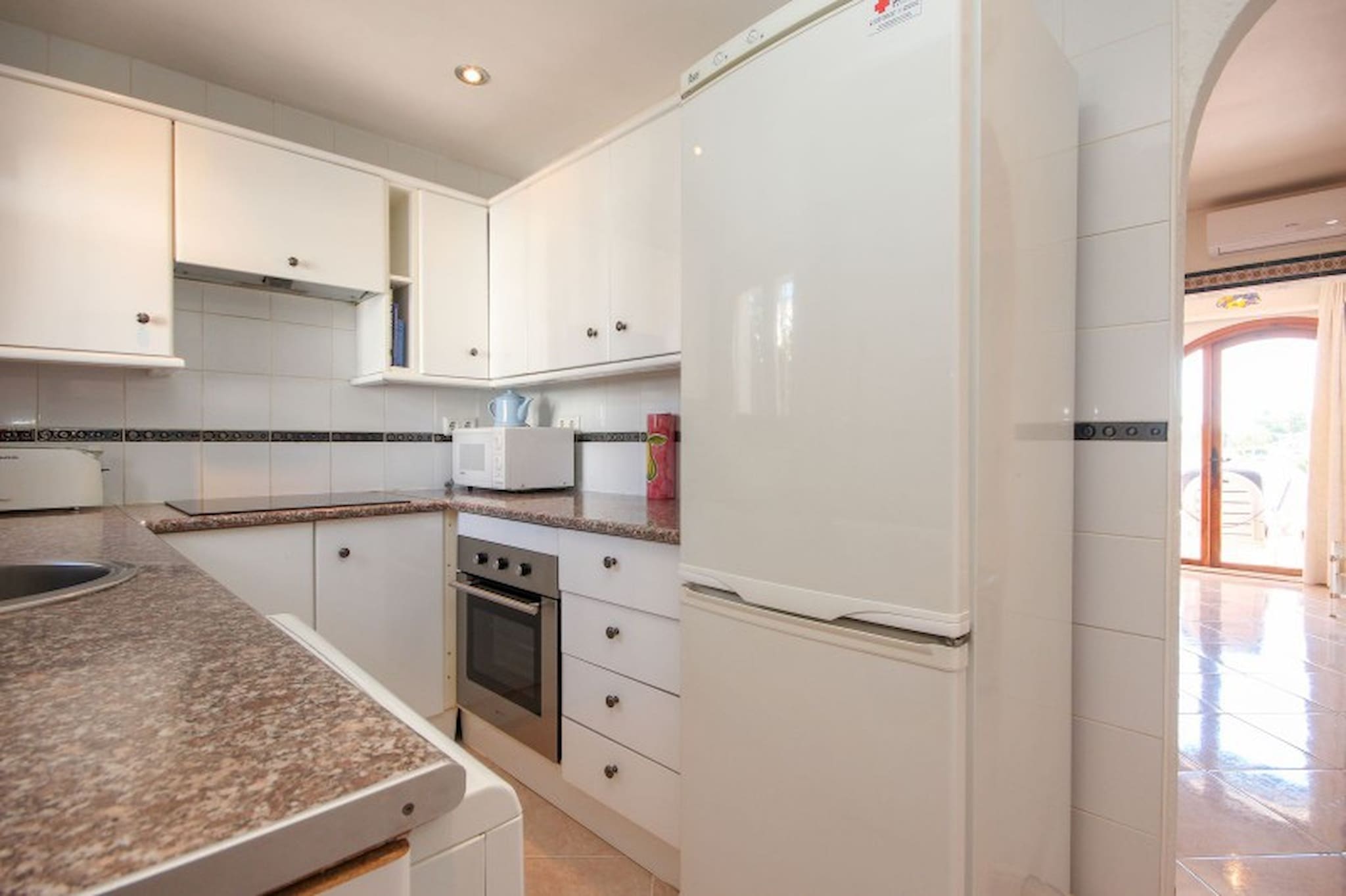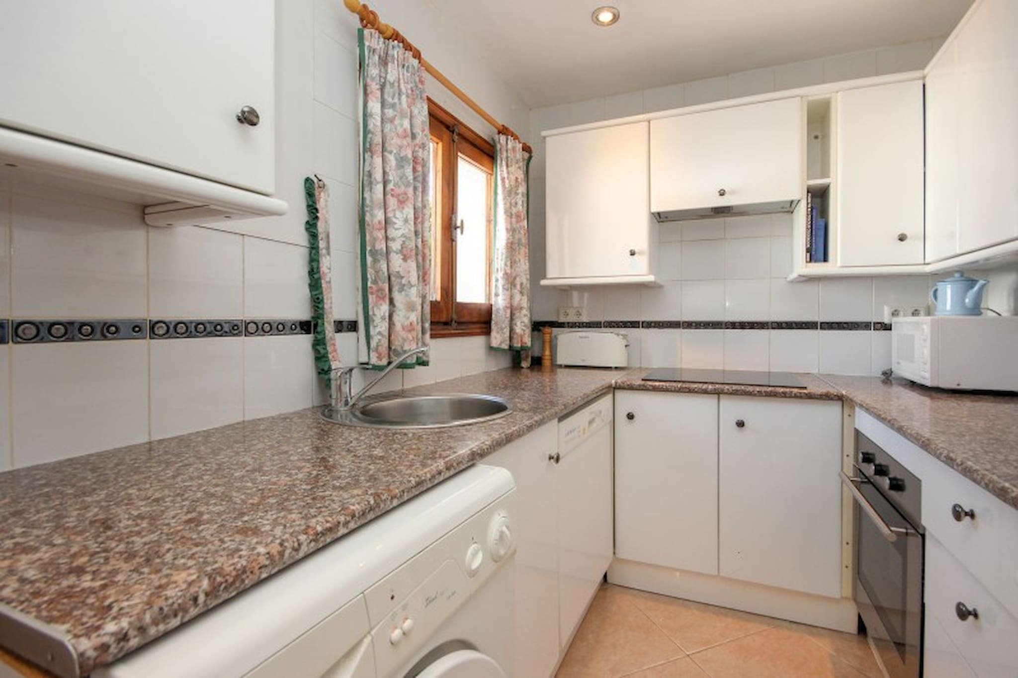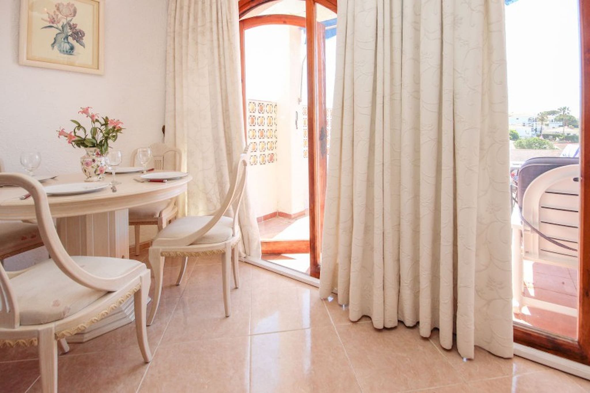 The master bedroom is furnished with a king size bed and the guest bedroom offers twin beds. Both bedrooms have fitted wardrobes and shutters. The apartment benefits from a family bathroom, fitted with a bath with a shower attachment and also a washing machine.