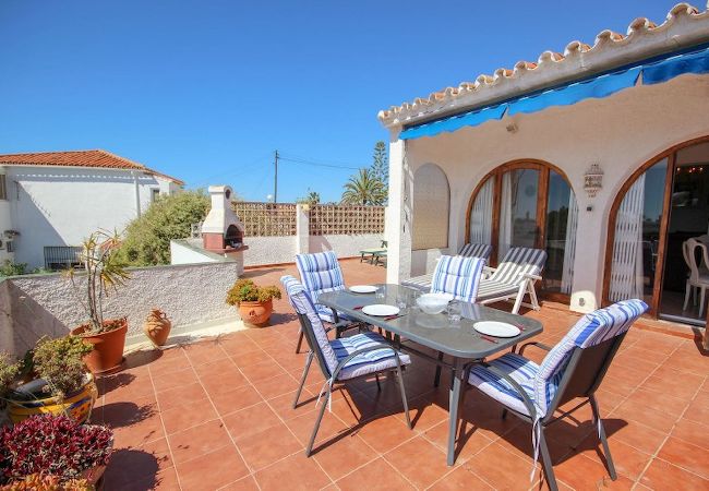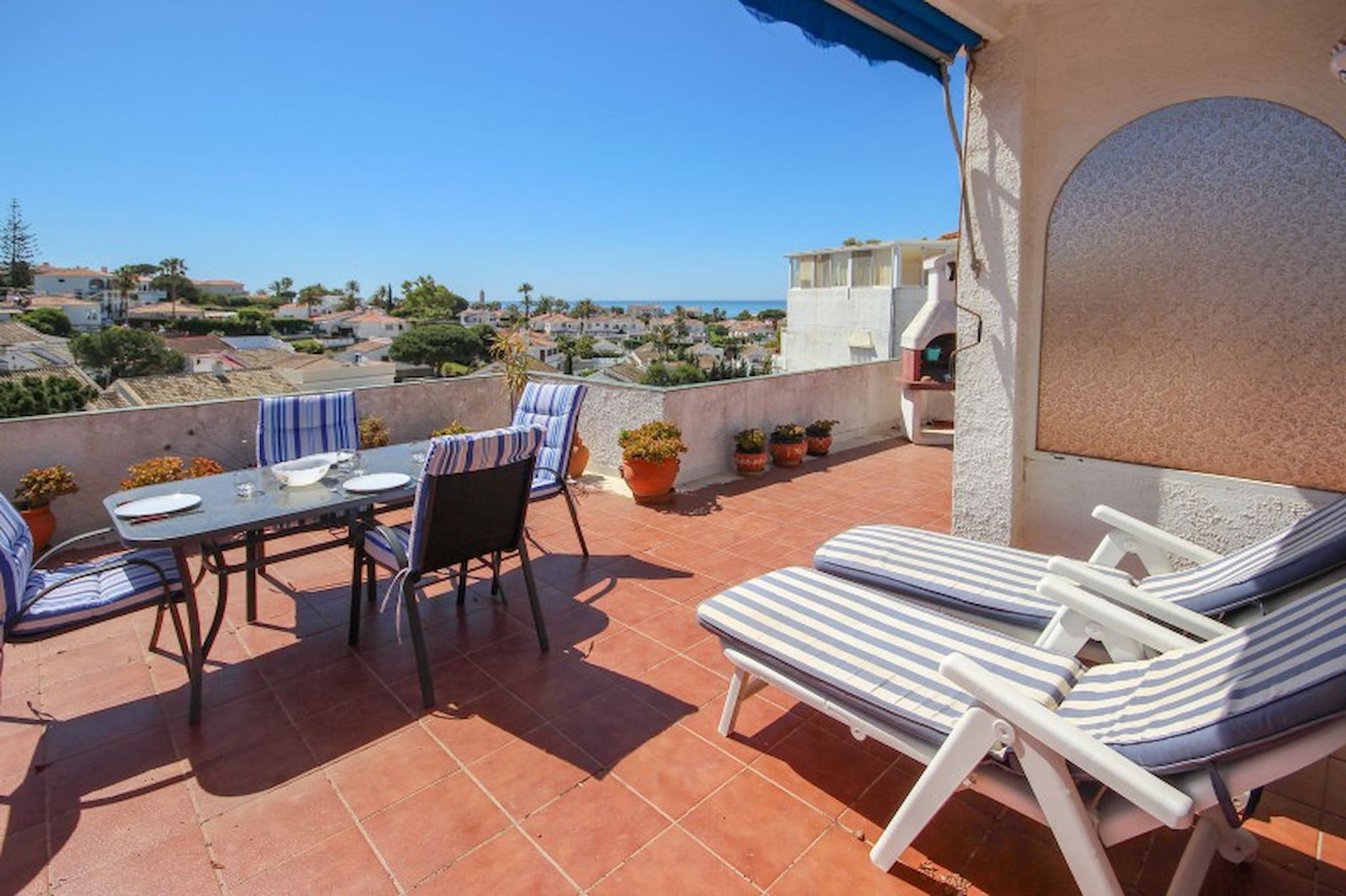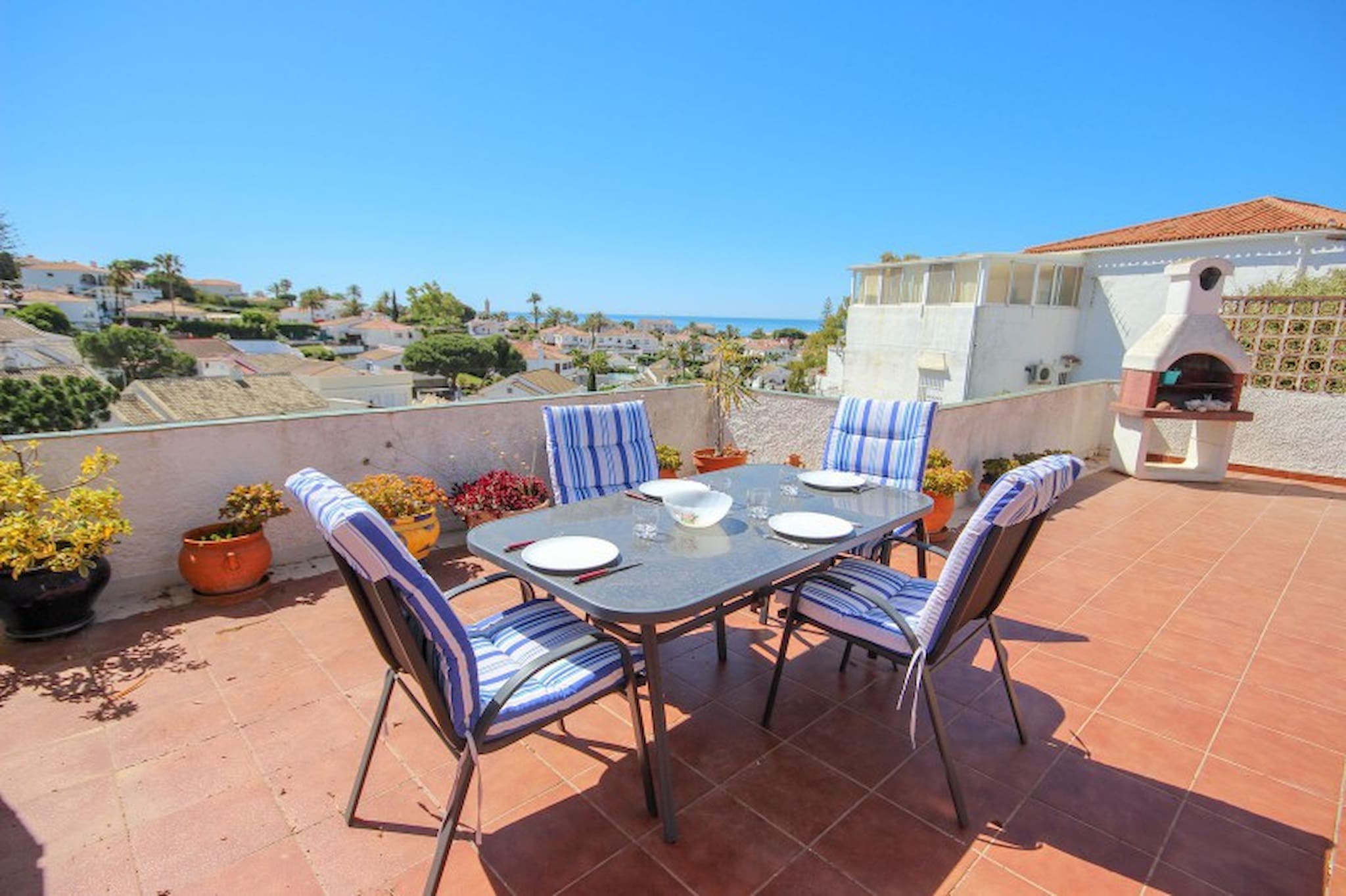 The entrance to the house is accessed via a small garden area, as you enter there is a fully equipped kitchen to your left and straight ahead is a spacious lounge area with two sofas, a coffee table, a television, a large cabinet and an electric fire. To the rear of the lounge are a dining table and four chairs. This area leads on to a large open terrace with a brick barbecue and a table and chairs, perfect for summer evenings and dining al fresco, enjoying the stunning views of El Faro and the sea.The property has a guest bedroom with twin beds, a bedside table and wardrobe and a master bedroom with a double bed, bedside cabinet and a chest of drawers and a wardrobe. Both bedrooms enjoy a bathroom with a bath and shower within. The property offers a parking space next to the house and air conditioning hot and cold in both bedrooms and the lounge.