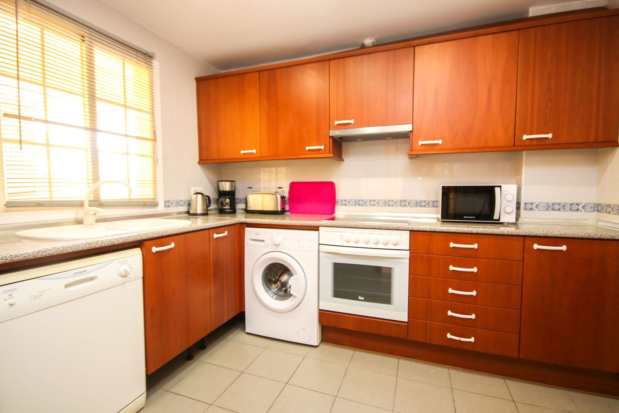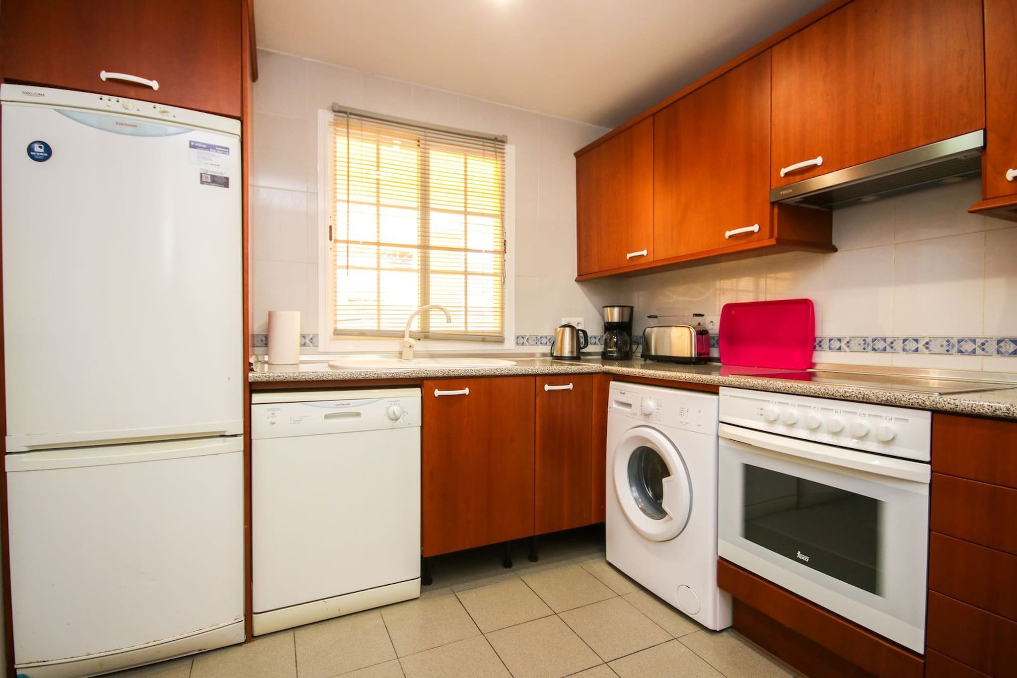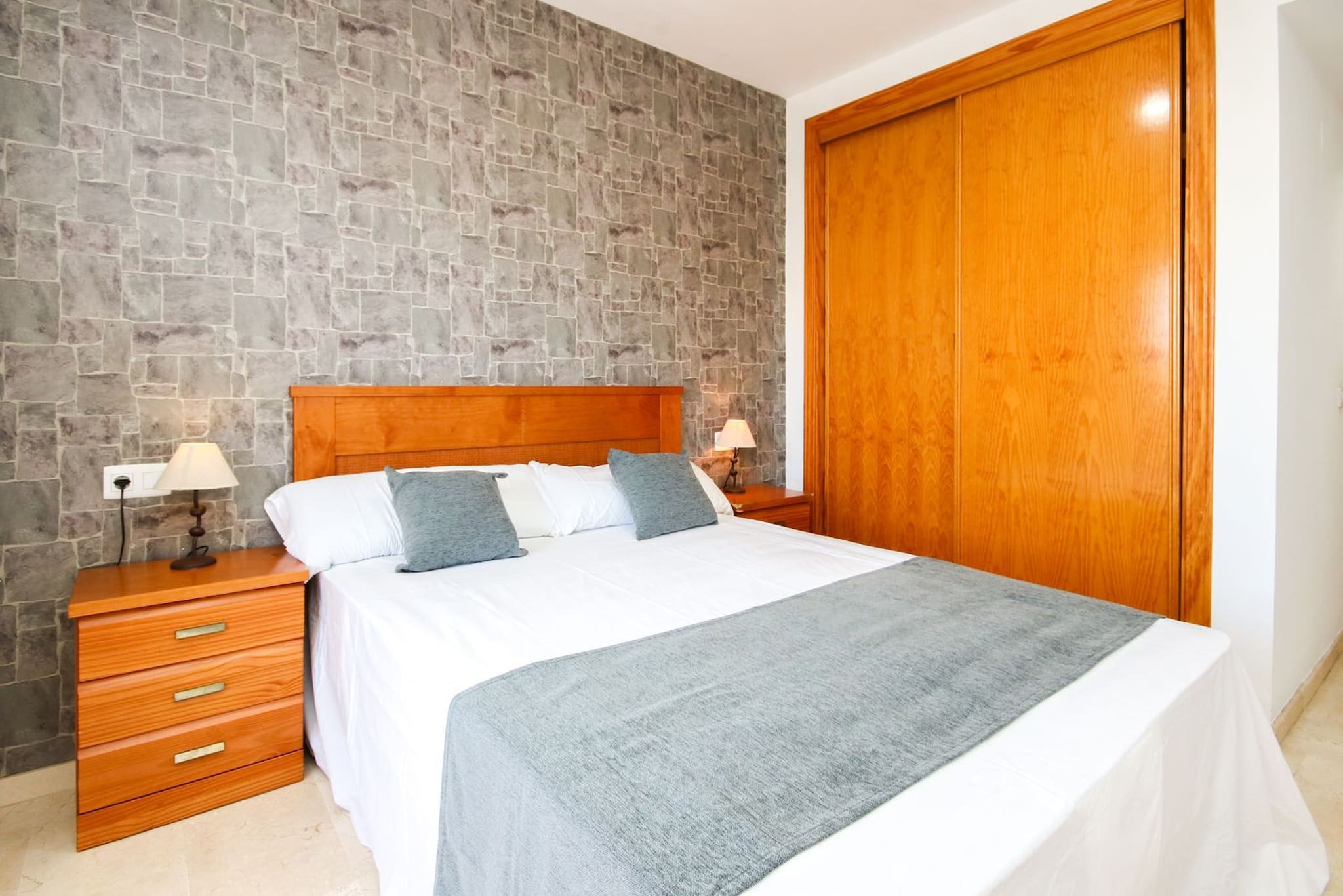 The master bedroom is furnished with a king size bed and the guest bedroom offers twin beds. Both bedrooms have fitted wardrobes and shutters. The apartment benefits from a family bathroom, fitted with a bath with a shower attachment and also a washing machine.