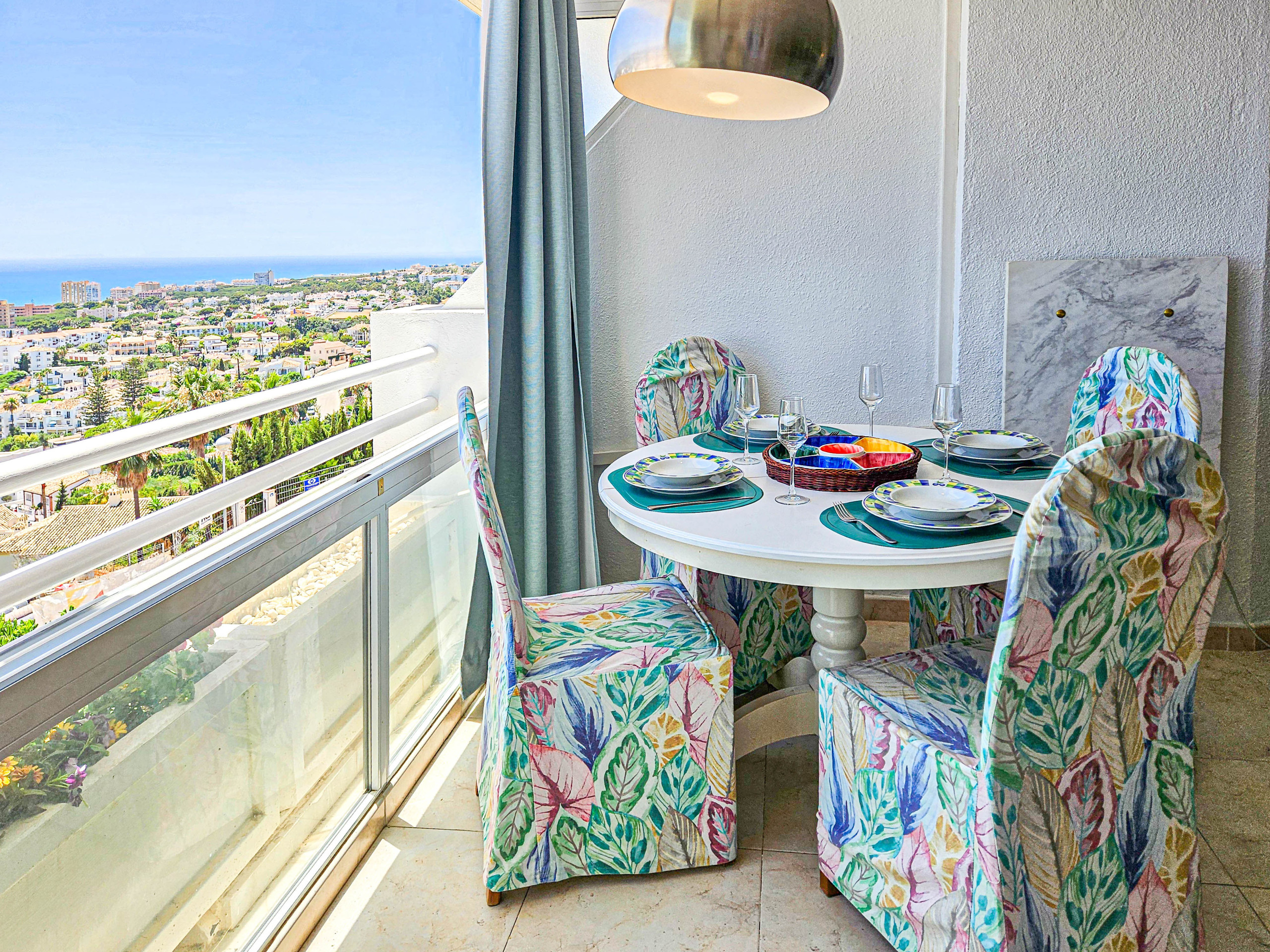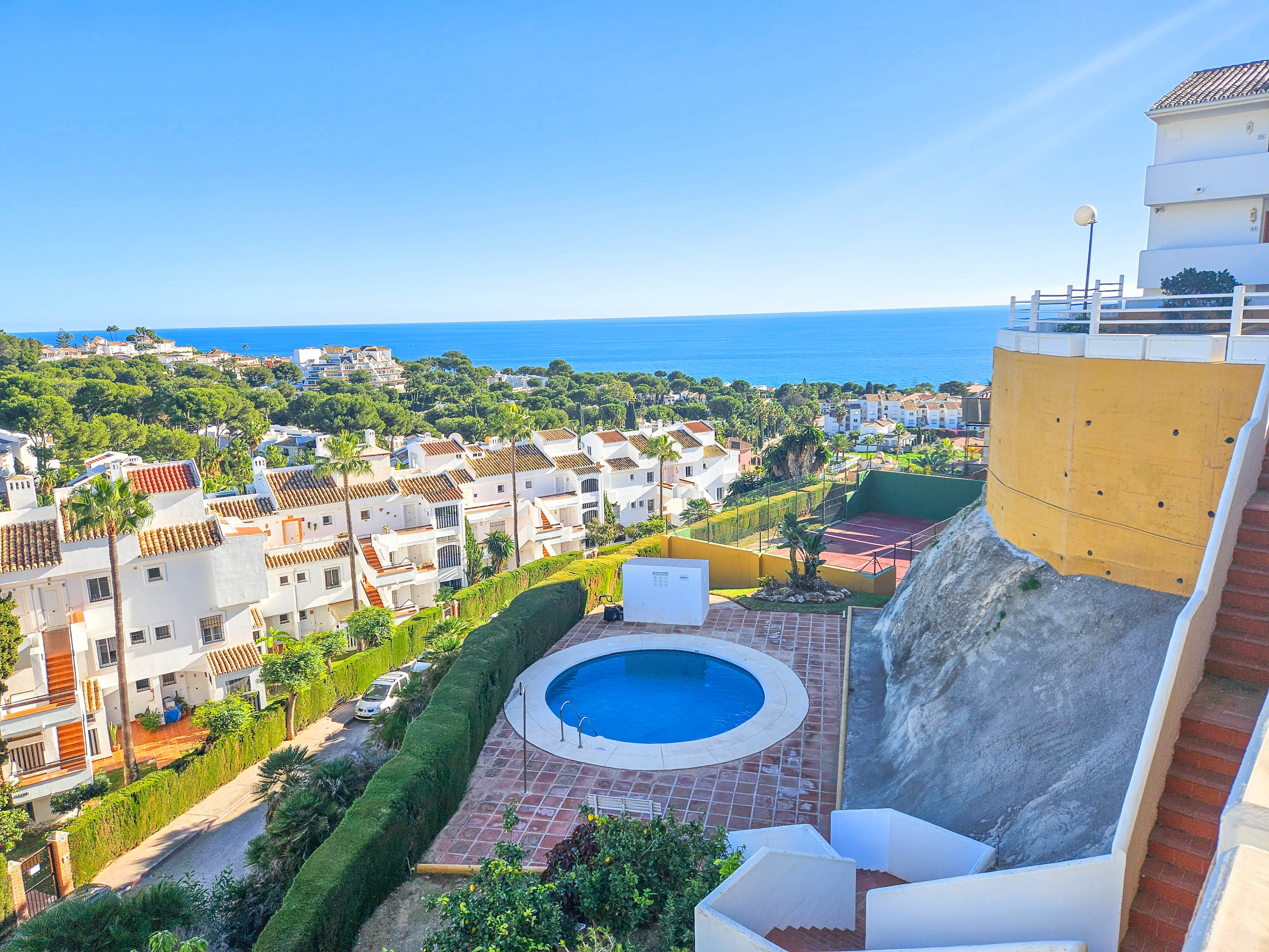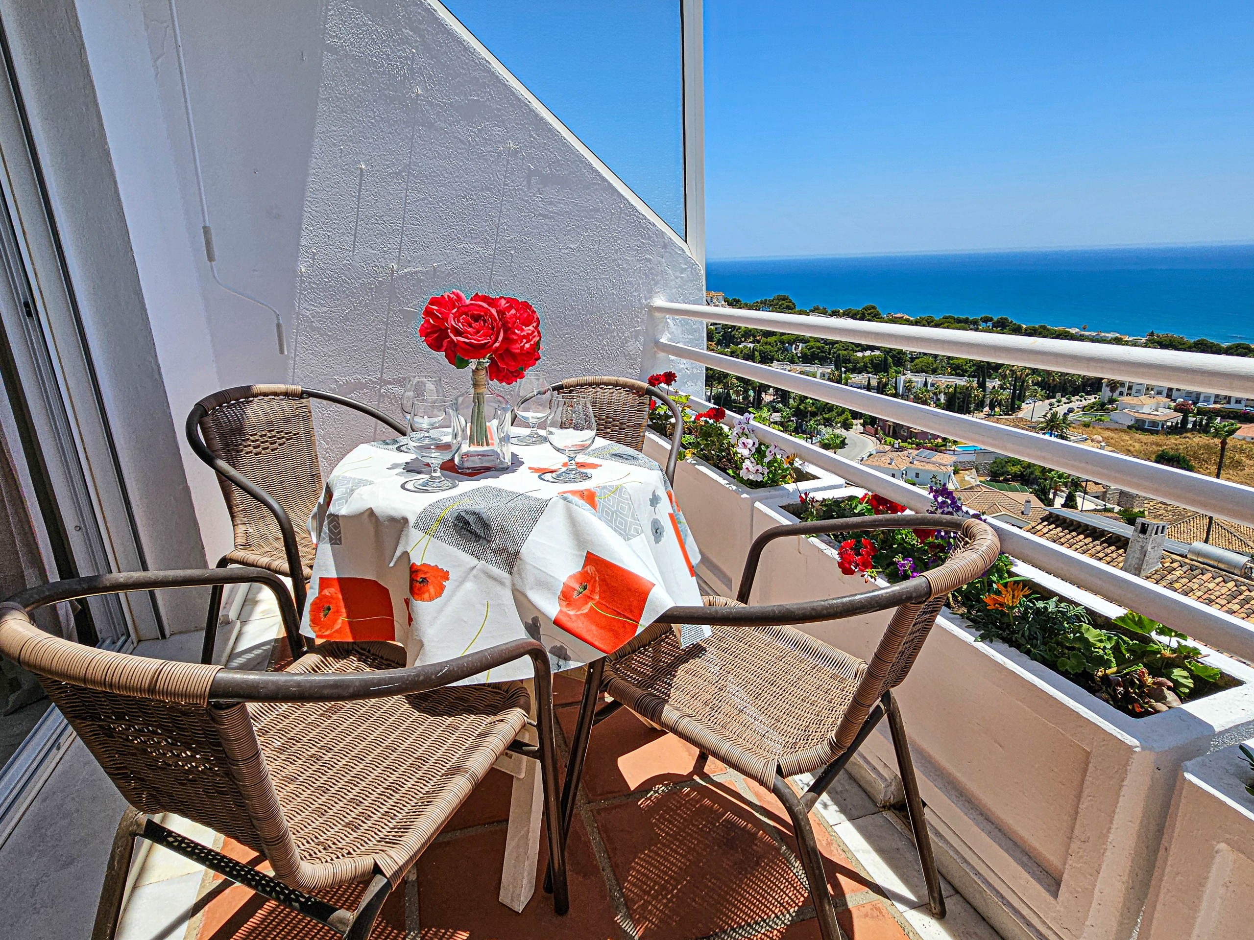 This charming two bedroom apartment is located in the Colinas del Mar complex in Riviera del Sol. Set back in the hills of Riviera, the apartment enjoys uninterrupted sea views. The secure gated complex offers two communal pools, one with a separate children's pool and a tennis court. There is also an open carpark. The beach and a selection of restaurants, bars and shops are all within a 1km distance. Miraflores Golf Club is under 2km away. The apartment offers hot & cold vented aircon throughout and free WIFI.