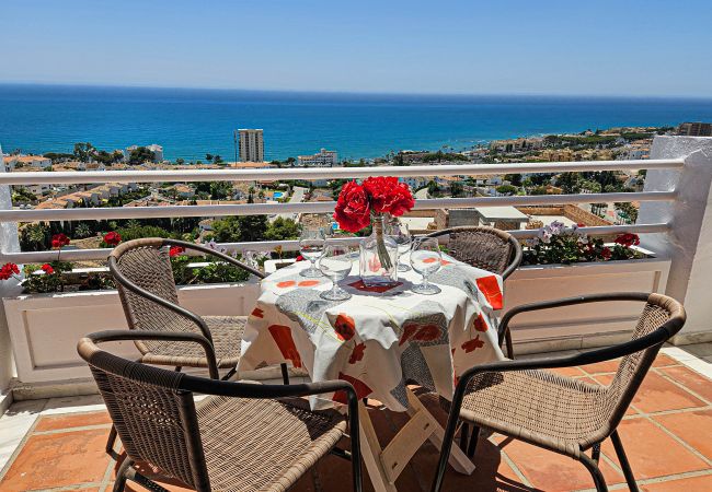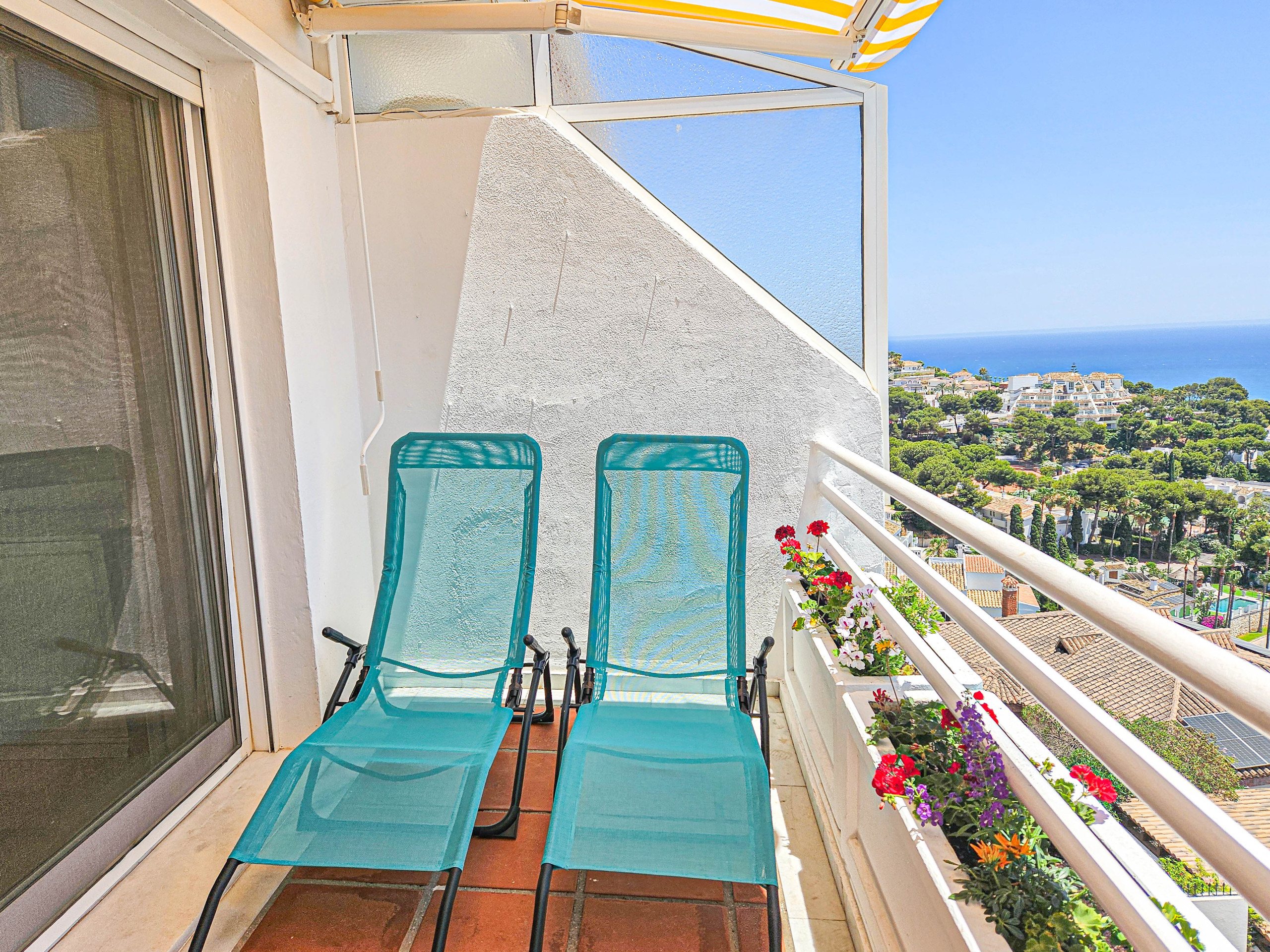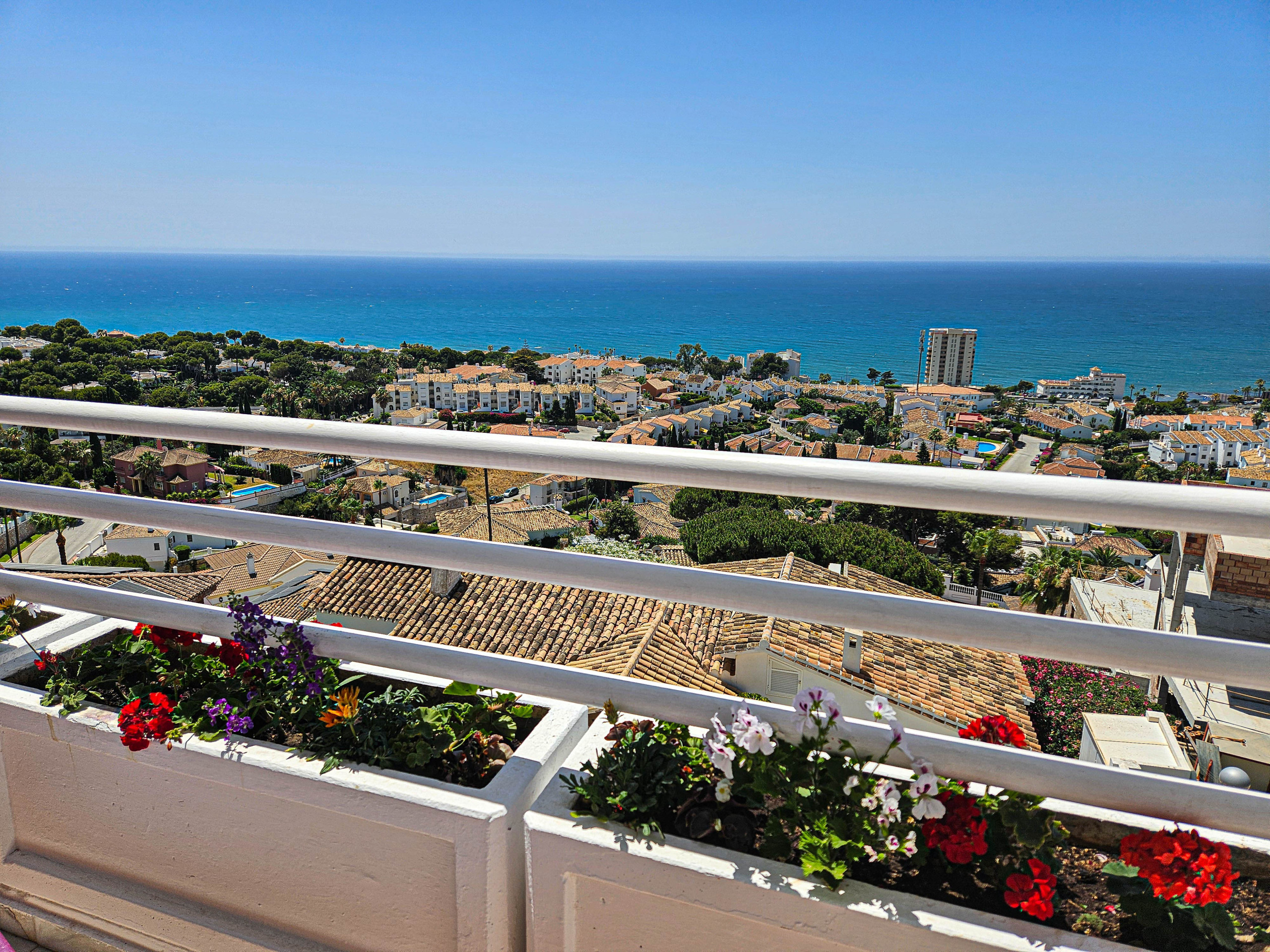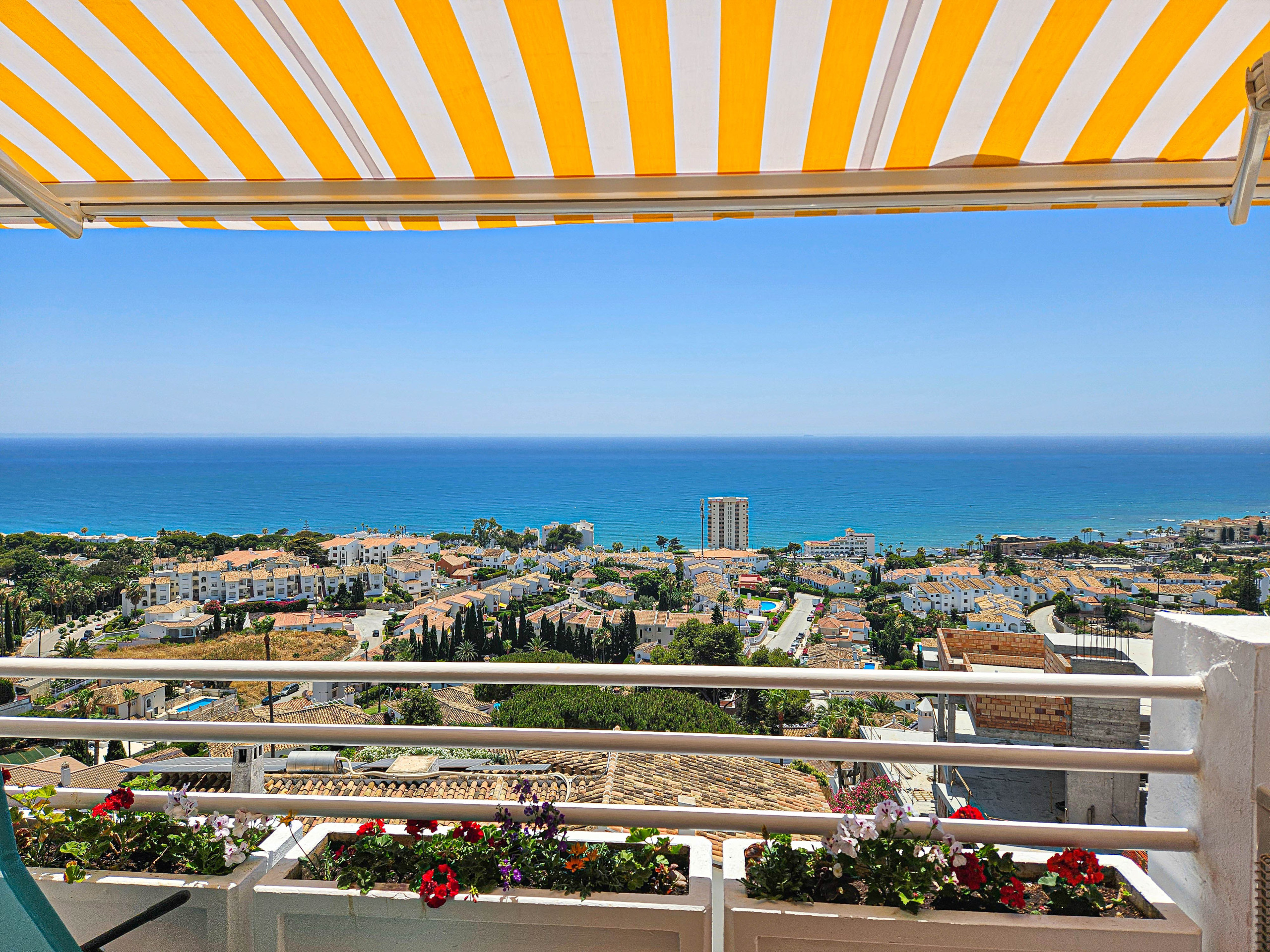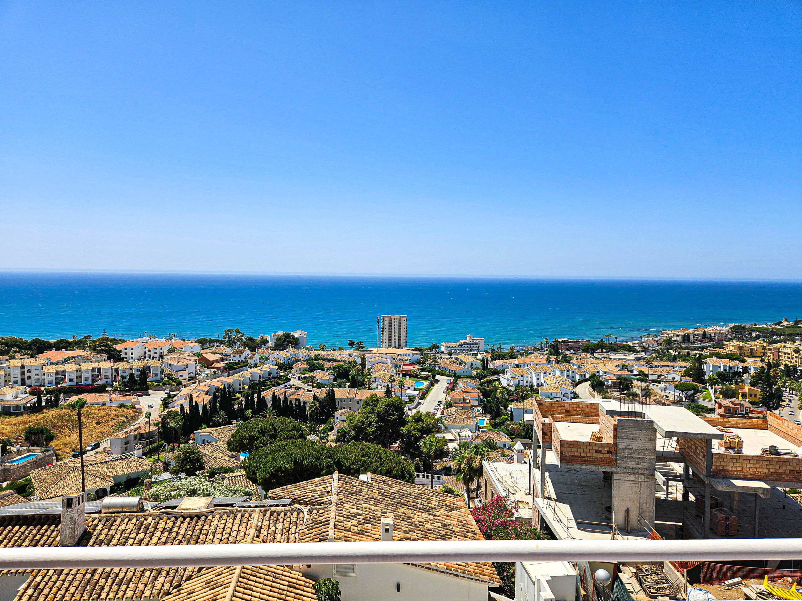 This lovely two bedroom, duplex penthouse apartment is located in the Colinas del Mar complex in Riviera del Sol. Set back in the hills of Riviera, the apartment enjoys uninterrupted sea views. The secure gated complex offers two communal pools, one with a separate children's pool and a tennis court. There is also an open carpark. The beach and a selection of restaurants, bars and shops are all within a 1km distance. Miraflores Golf Club is under 2km away. The apartment offers hot & cold vented aircon, shutters in the bedrooms and free WIFI.