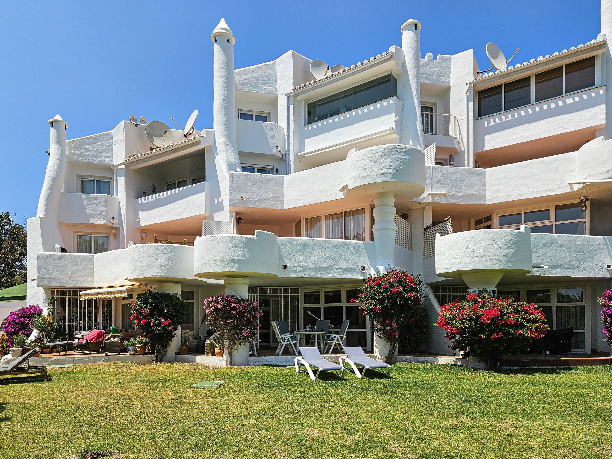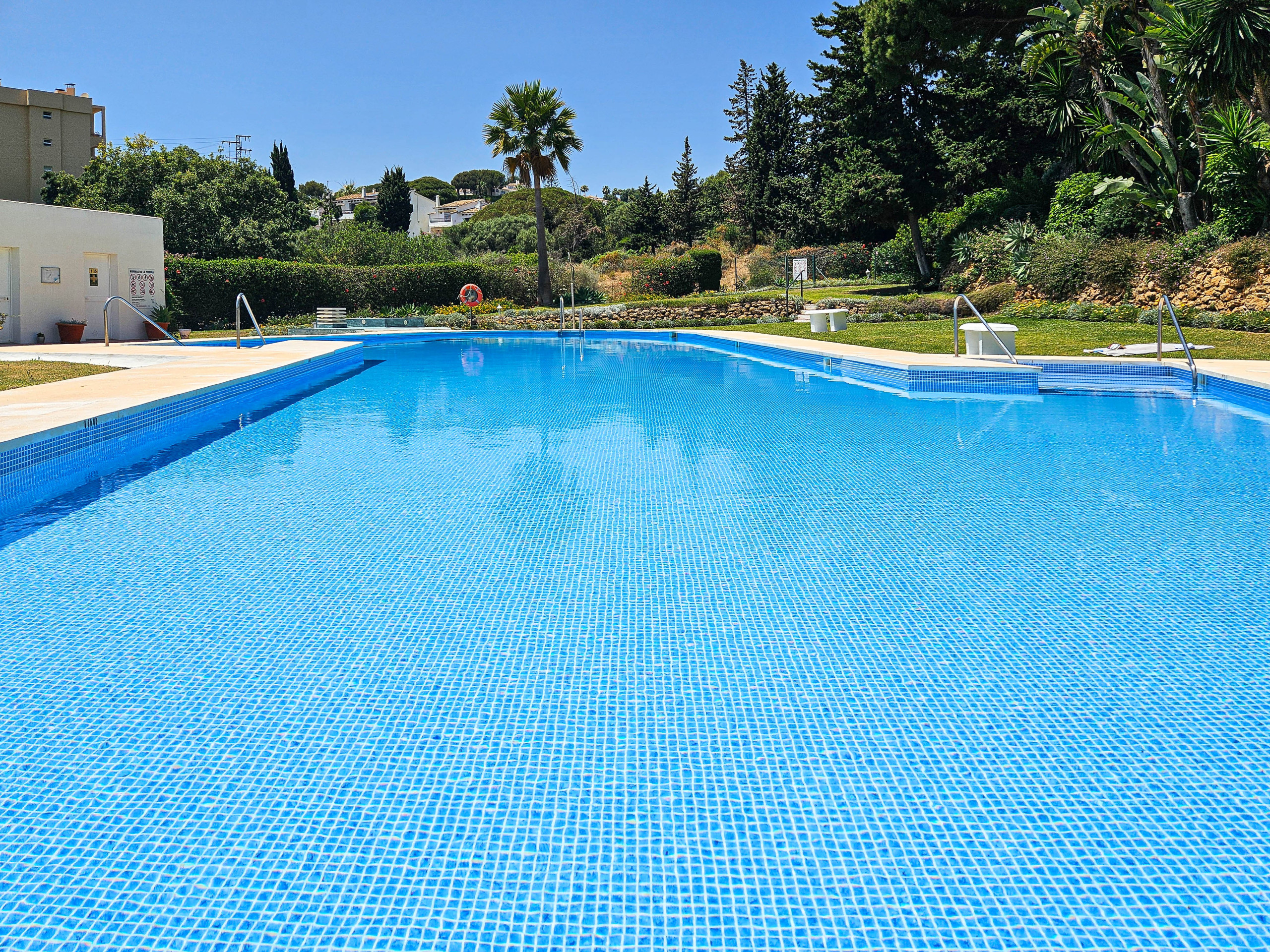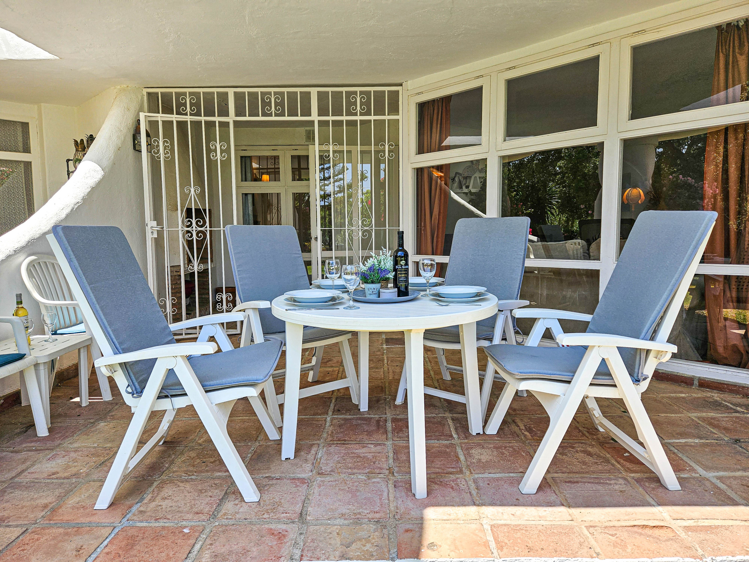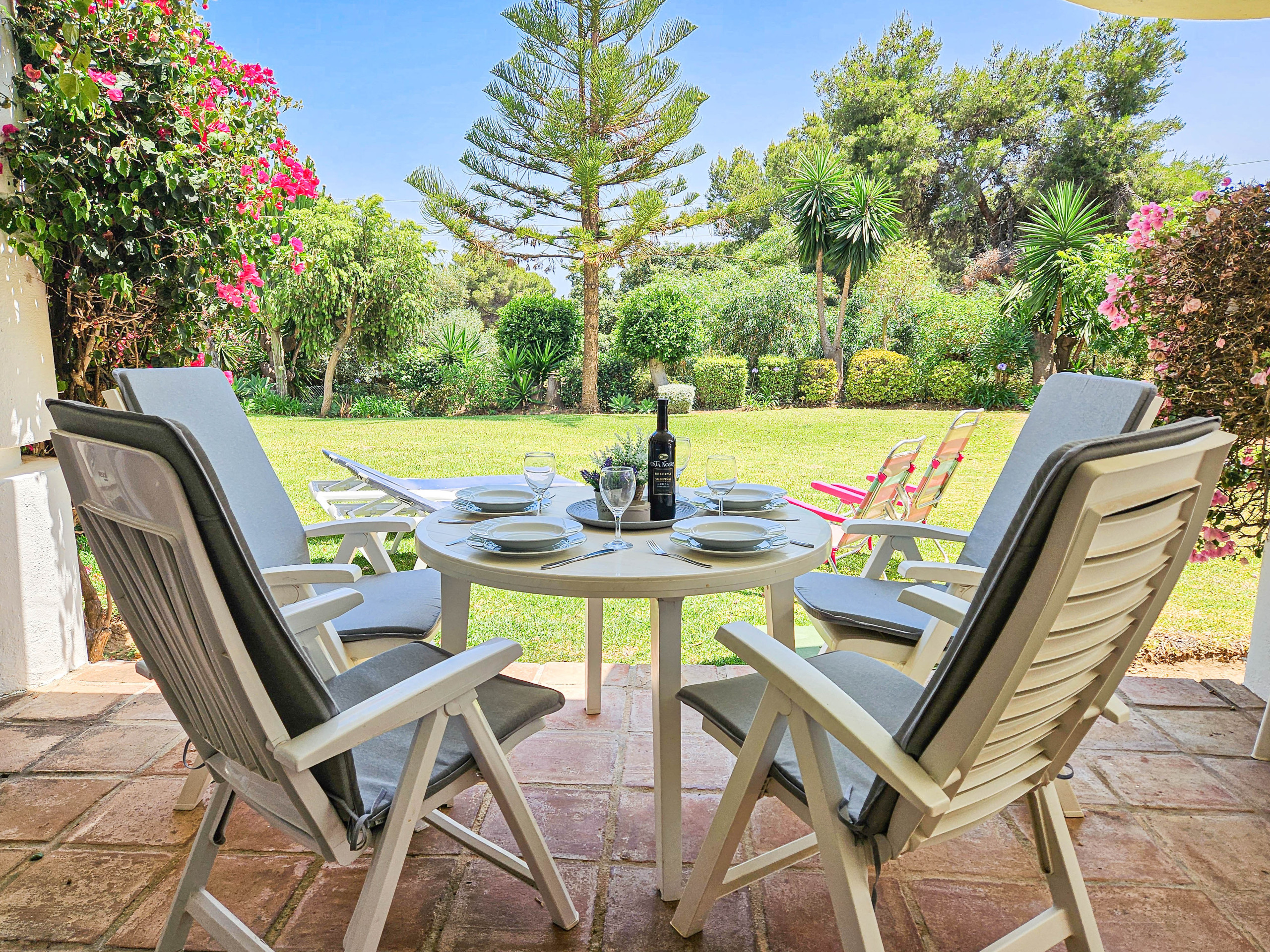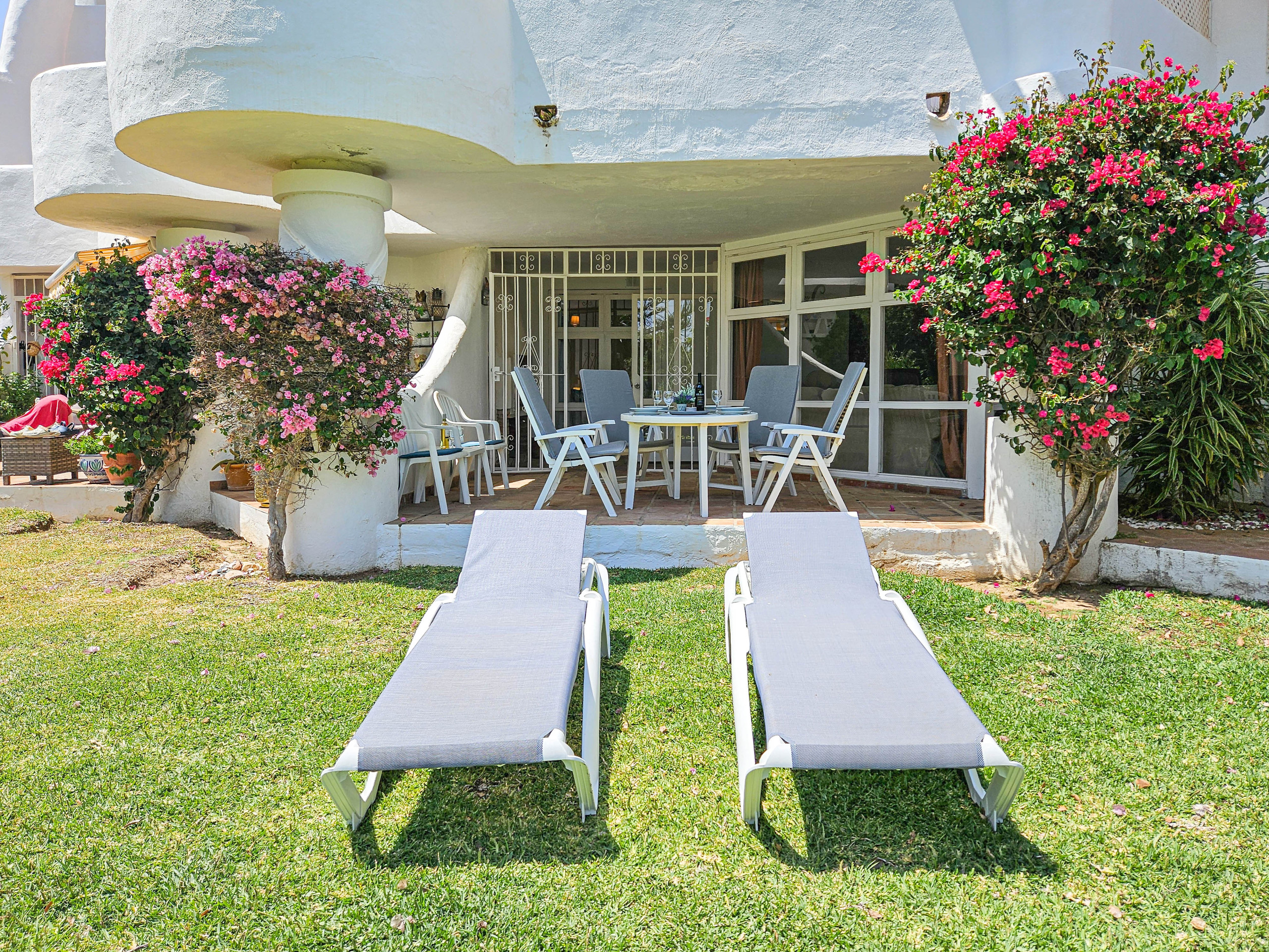 The accommodation is equipped with the following items: garden, garden furniture, 42 m² terrace, washing machine, barbecue, iron, internet (Wi-Fi), hair dryer, paddle tennis court, central heating, air conditioning throughout the house, communal swimming pool, open-air parking near the building, 2 fans, 1 TV, satellite tv (Languages: Spanish, English, German).