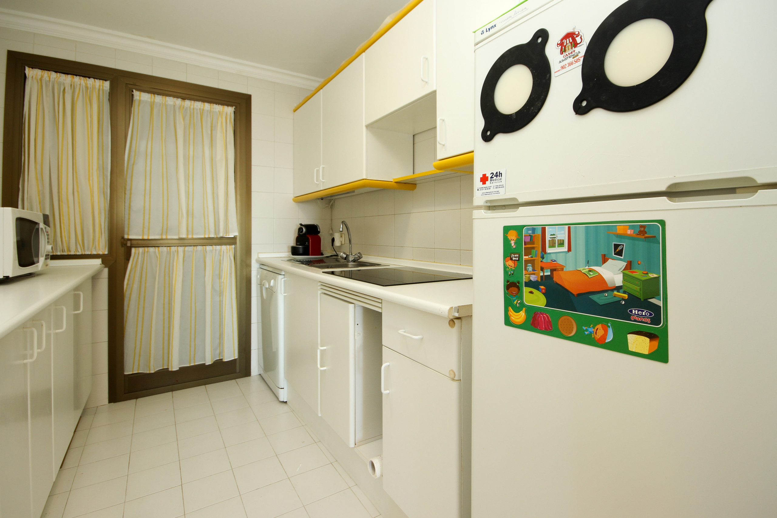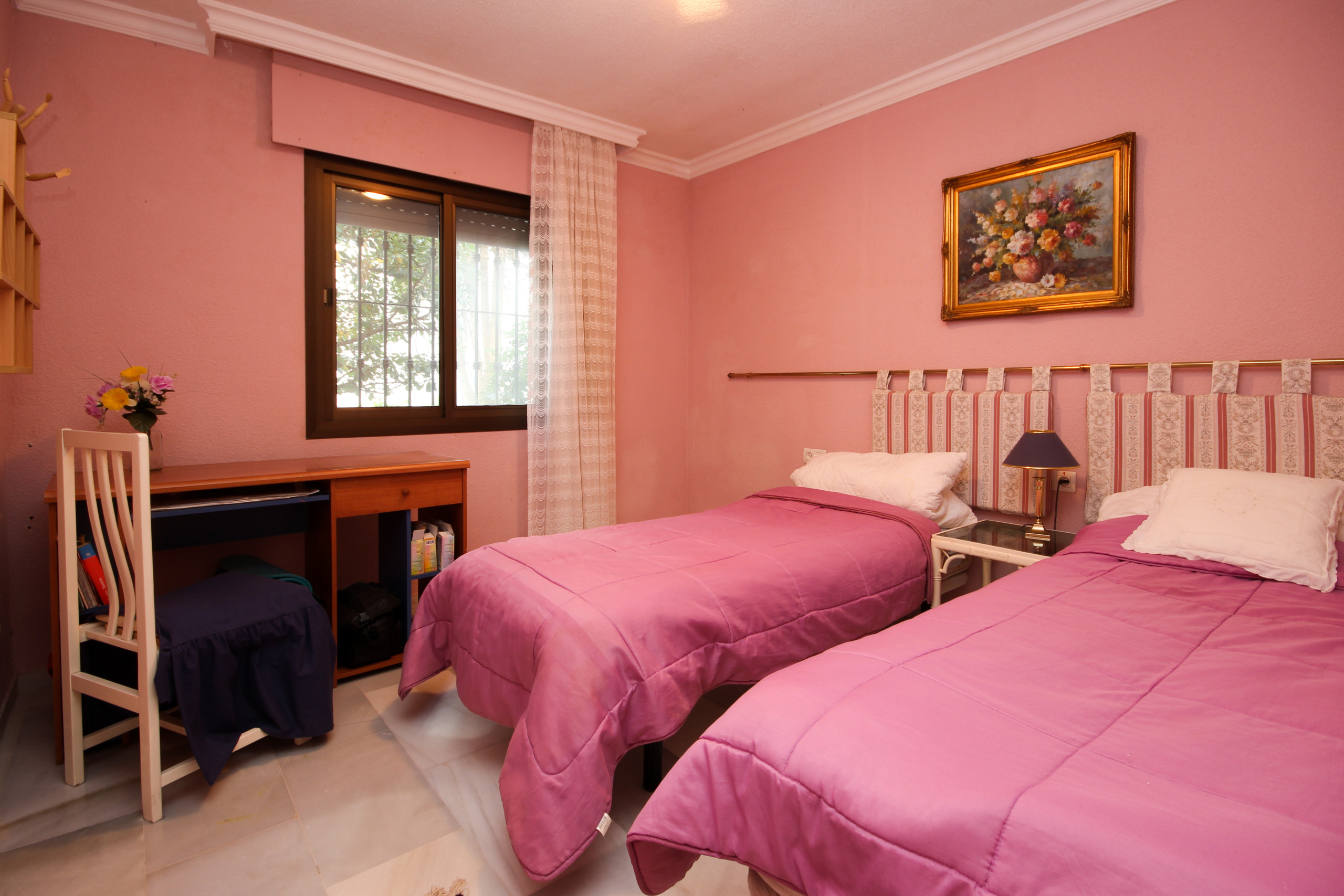 The master bedroom is furnished with a king size bed and the guest bedroom offers twin beds. Both bedrooms have fitted wardrobes and shutters. The apartment benefits from a family bathroom, fitted with a bath with a shower attachment and also a washing machine.