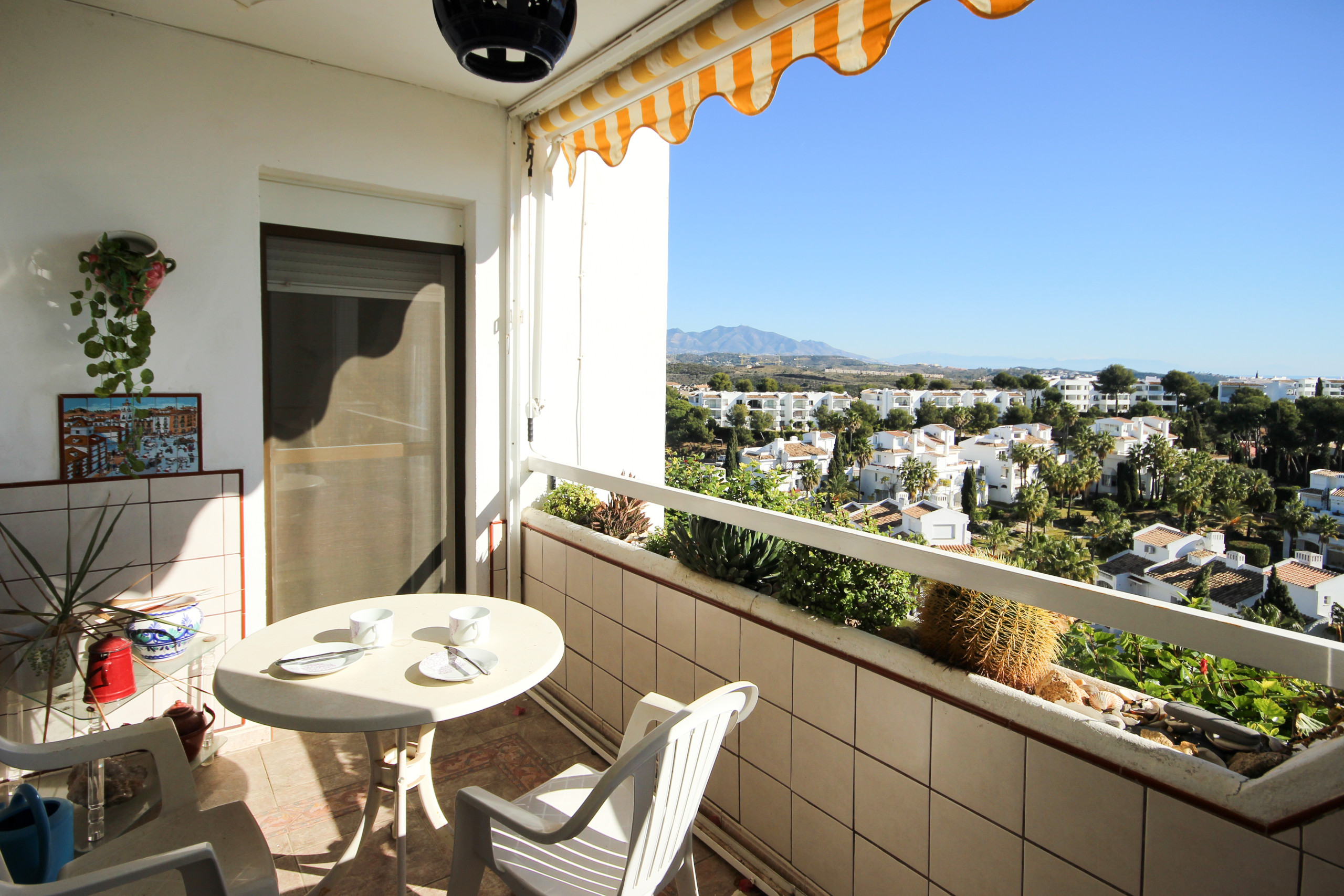 This charming two bedroom apartment is located in the Colinas del Mar complex in Riviera del Sol. Set back in the hills of Riviera, the apartment enjoys uninterrupted sea views. The secure gated complex offers two communal pools, one with a separate children's pool and a tennis court. There is also an open carpark. The beach and a selection of restaurants, bars and shops are all within a 1km distance. Miraflores Golf Club is under 2km away. The apartment offers hot & cold vented aircon throughout and free WIFI.