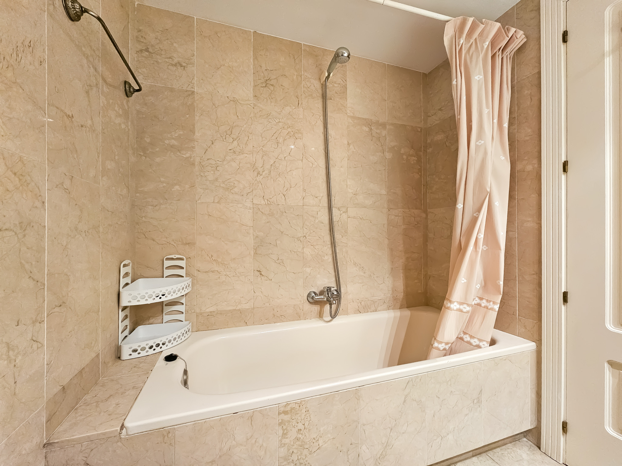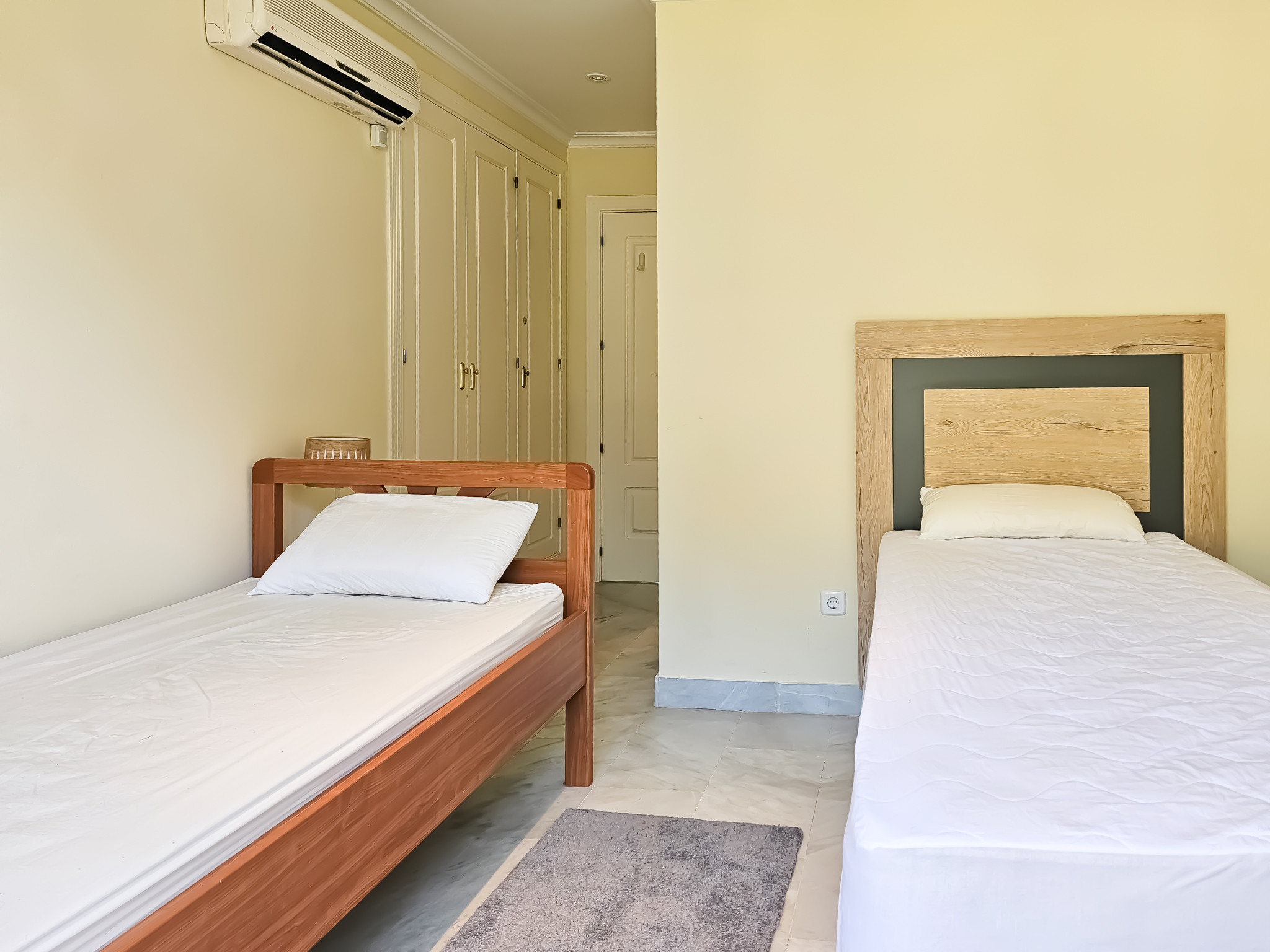 The master bedroom is furnished with a king size bed, fitted wardrobes and has direct access onto the terrace. The second bedroom benefits from twin beds, with an optional pull out bed. This bedroom offers a small private terrace and has an ensuite bathroom with a bath fitted with a shower attachment and a bidet. There is access to a guest bathroom that has a bath, shower attachment and a bidet.