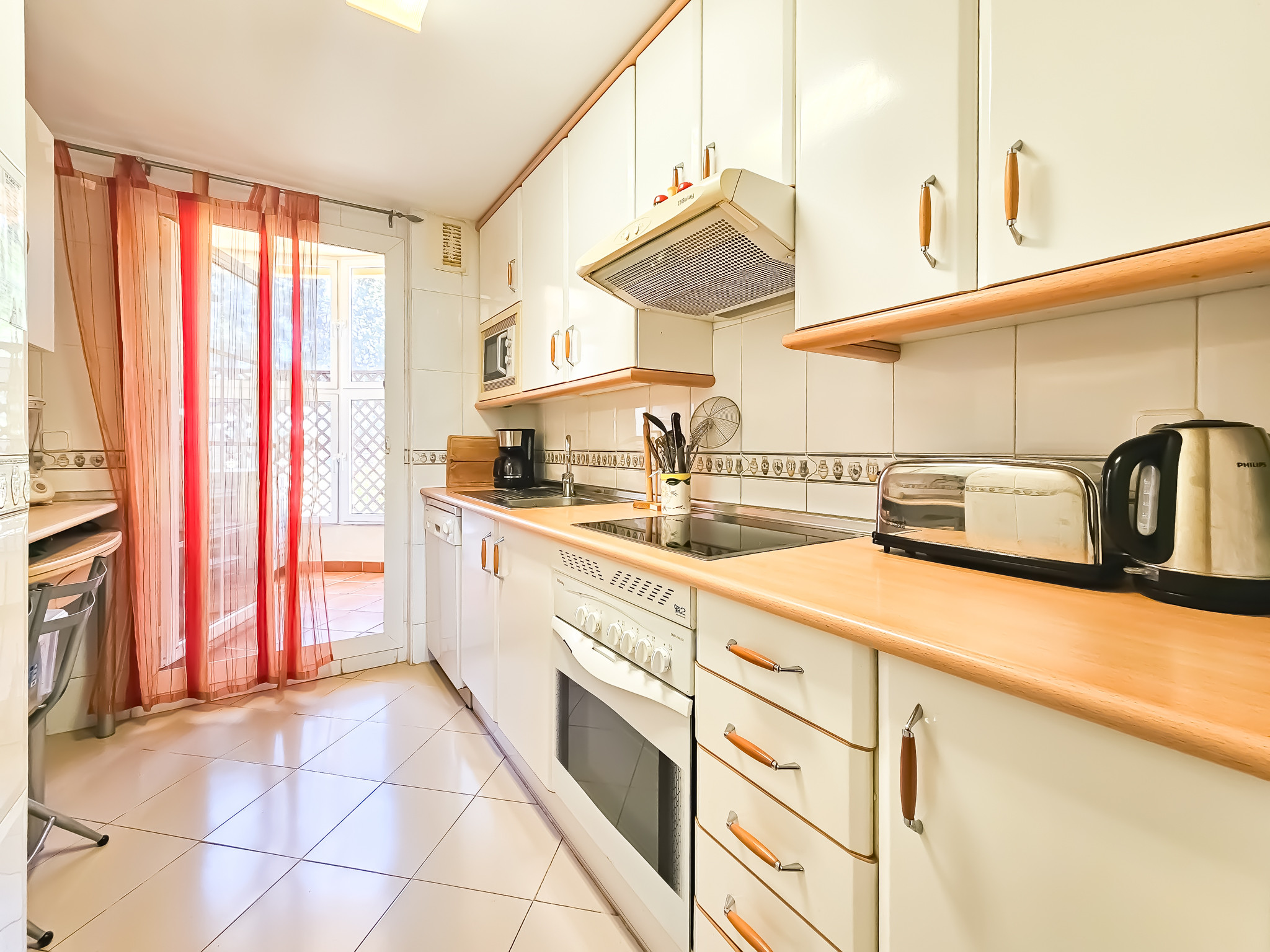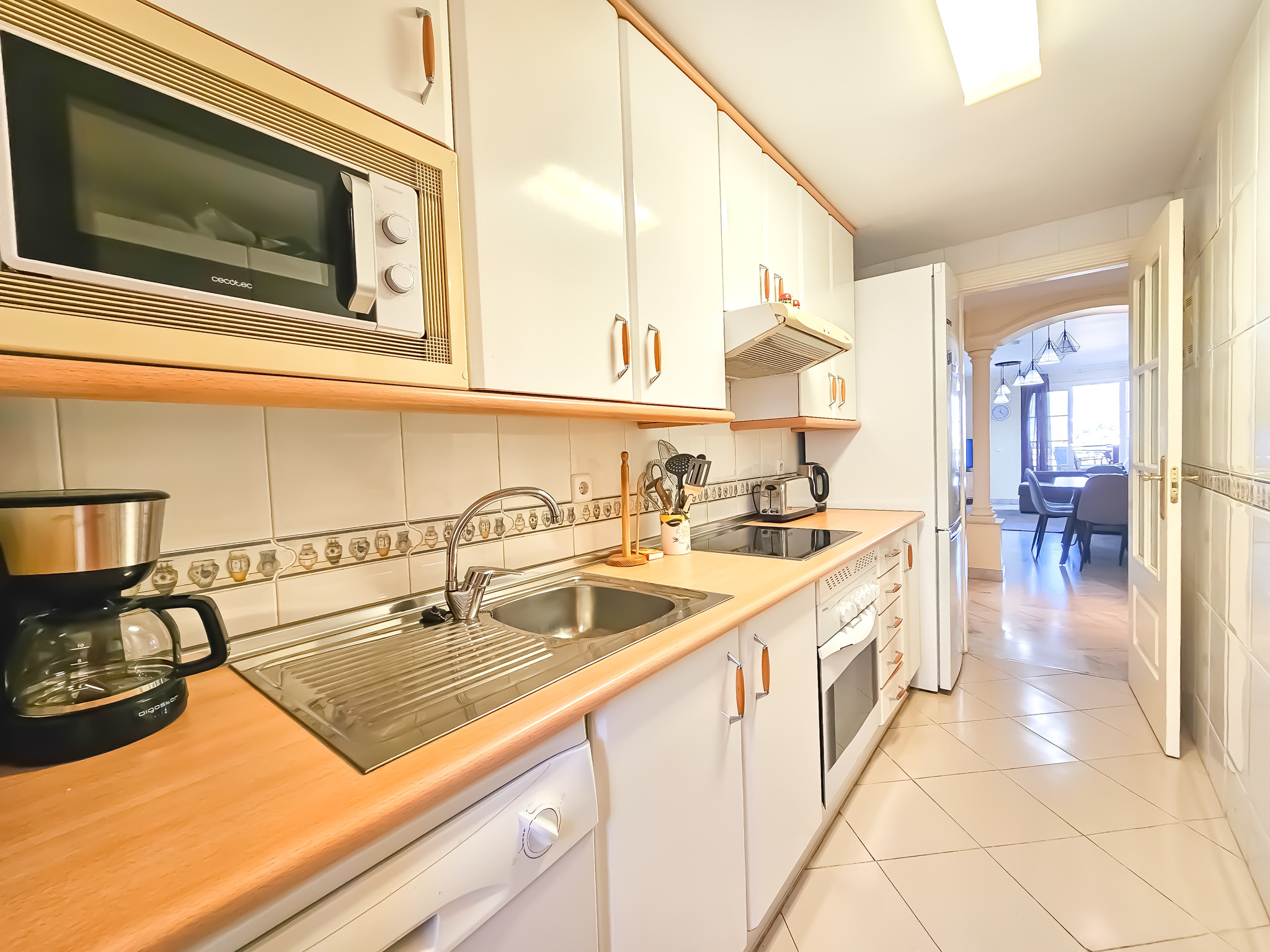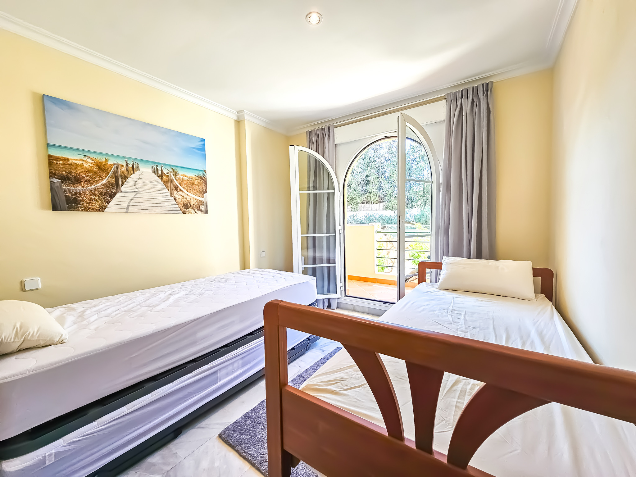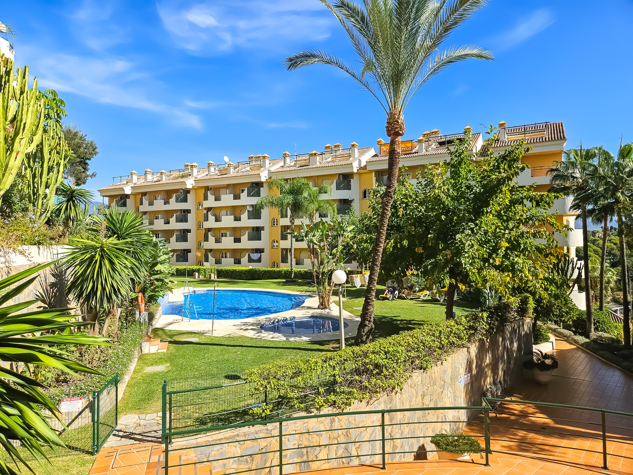 This two bedroom apartment is located in the Senorio de Aloha complex in Nueva Andalucia, The secure gated complex offers access to three communal pools, all with a waterfall and separate kids pools. The apartment benefits from a parking space in the underground parking. Stunning views can be enjoyed over the pools, mountain and the sea. The lounge and bedrooms have aircon units.