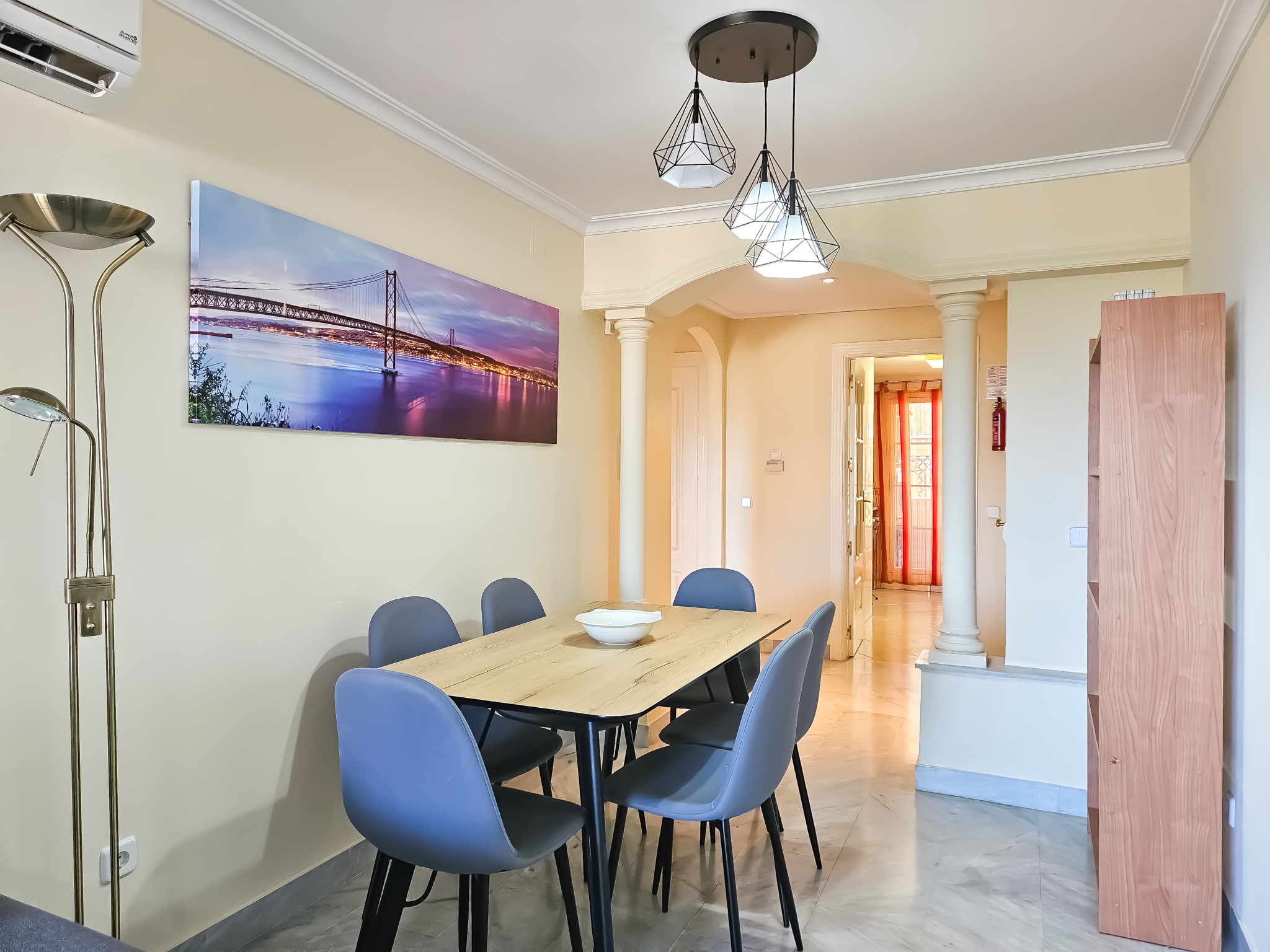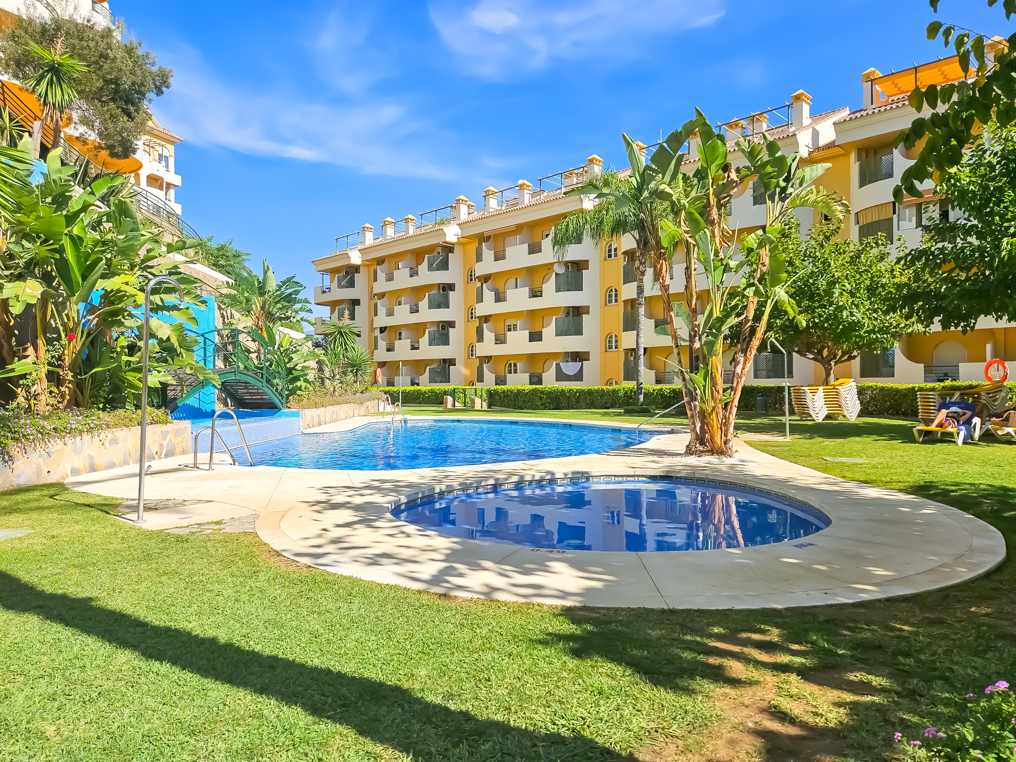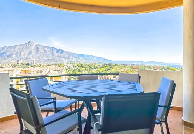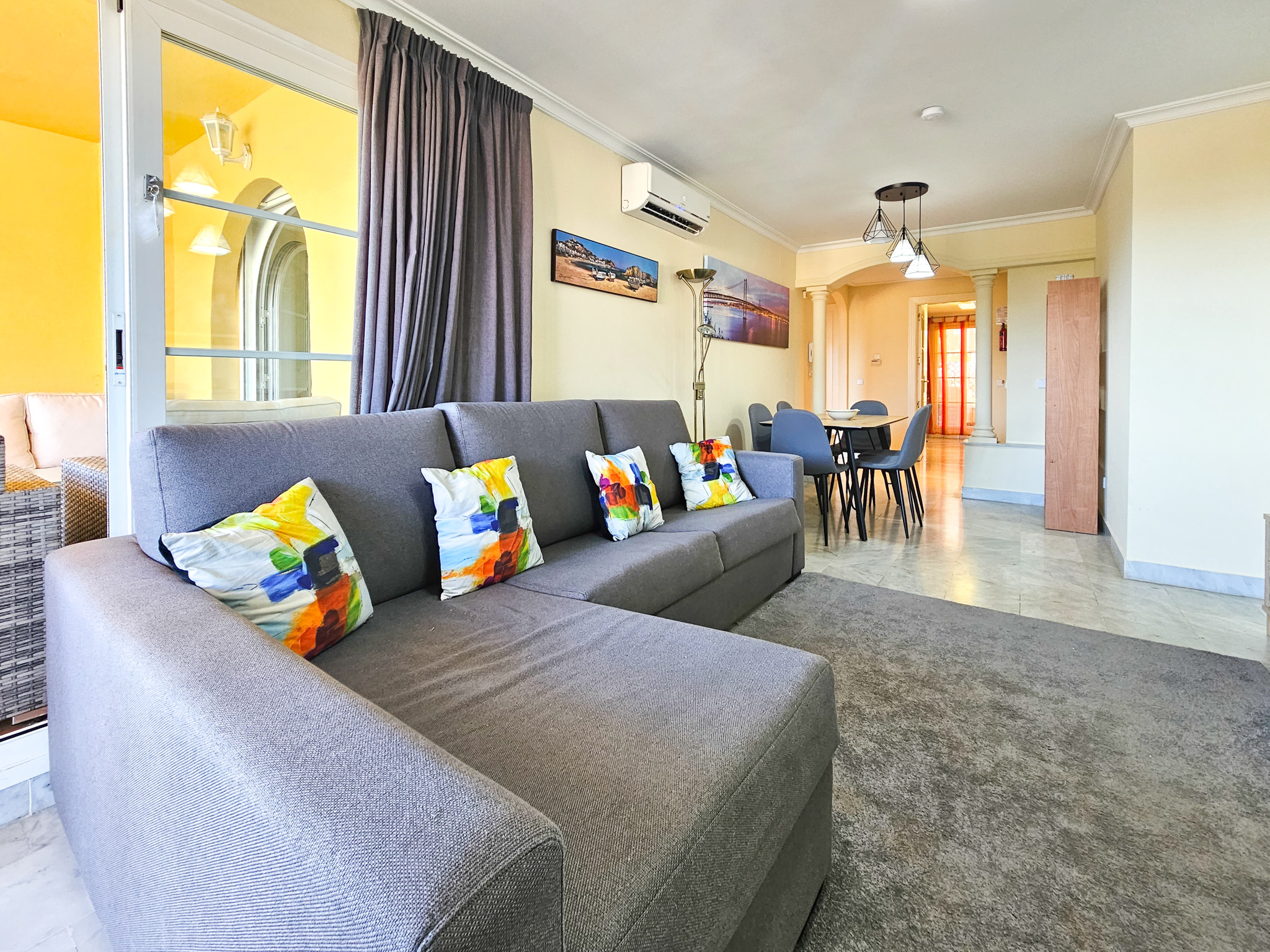 This two bedroom apartment is located in the Senorio de Aloha complex in Nueva Andalucia, The secure gated complex offers access to three communal pools, all with a waterfall and separate kids pools. The apartment benefits from a parking space in the underground parking. Stunning views can be enjoyed over the pools, mountain and the sea. The lounge and bedrooms have aircon units.