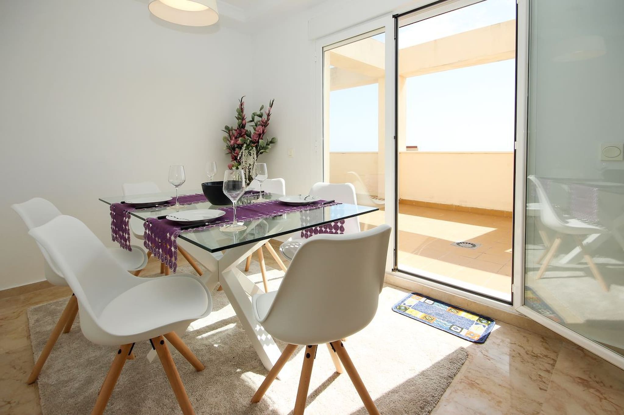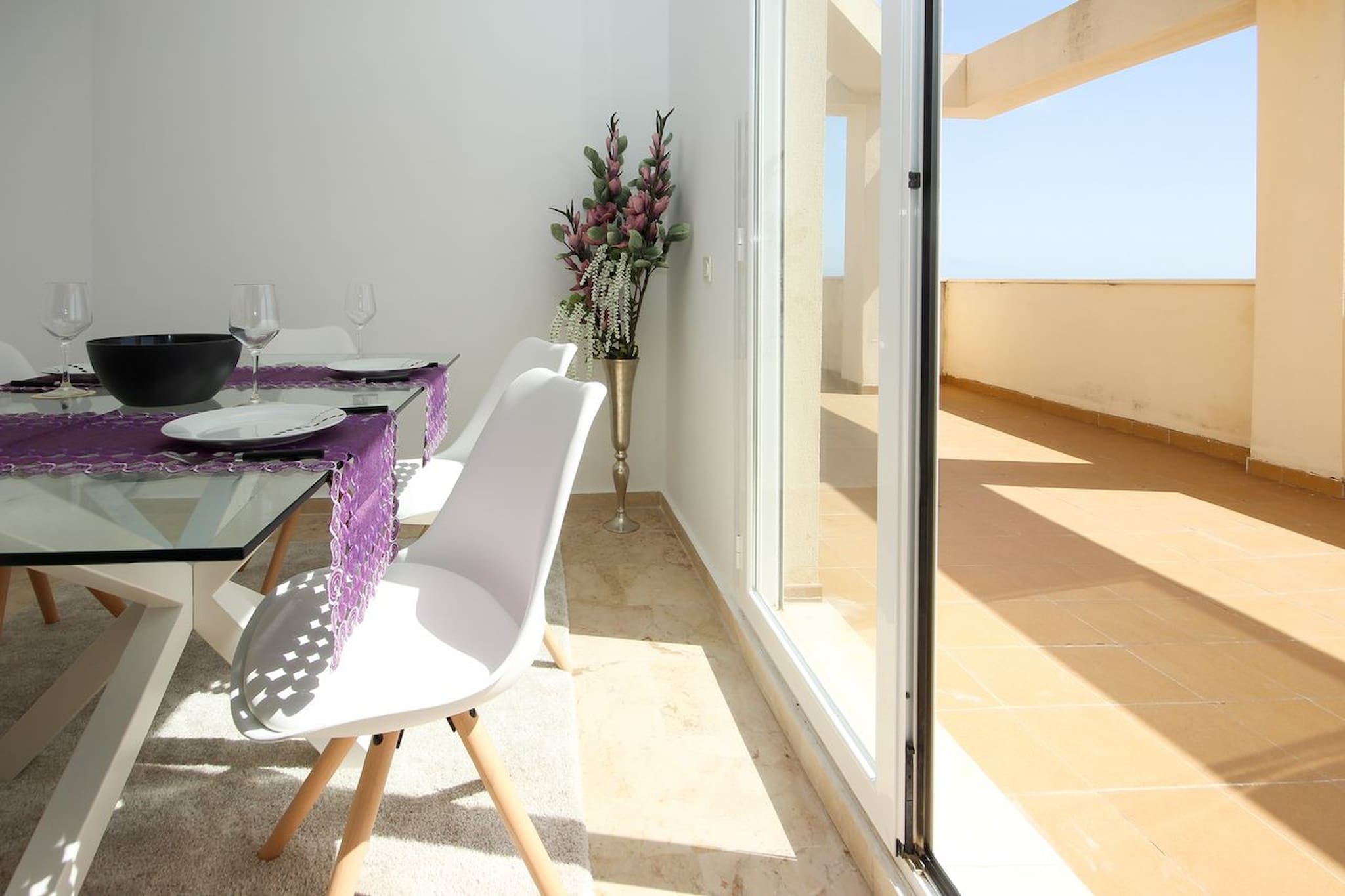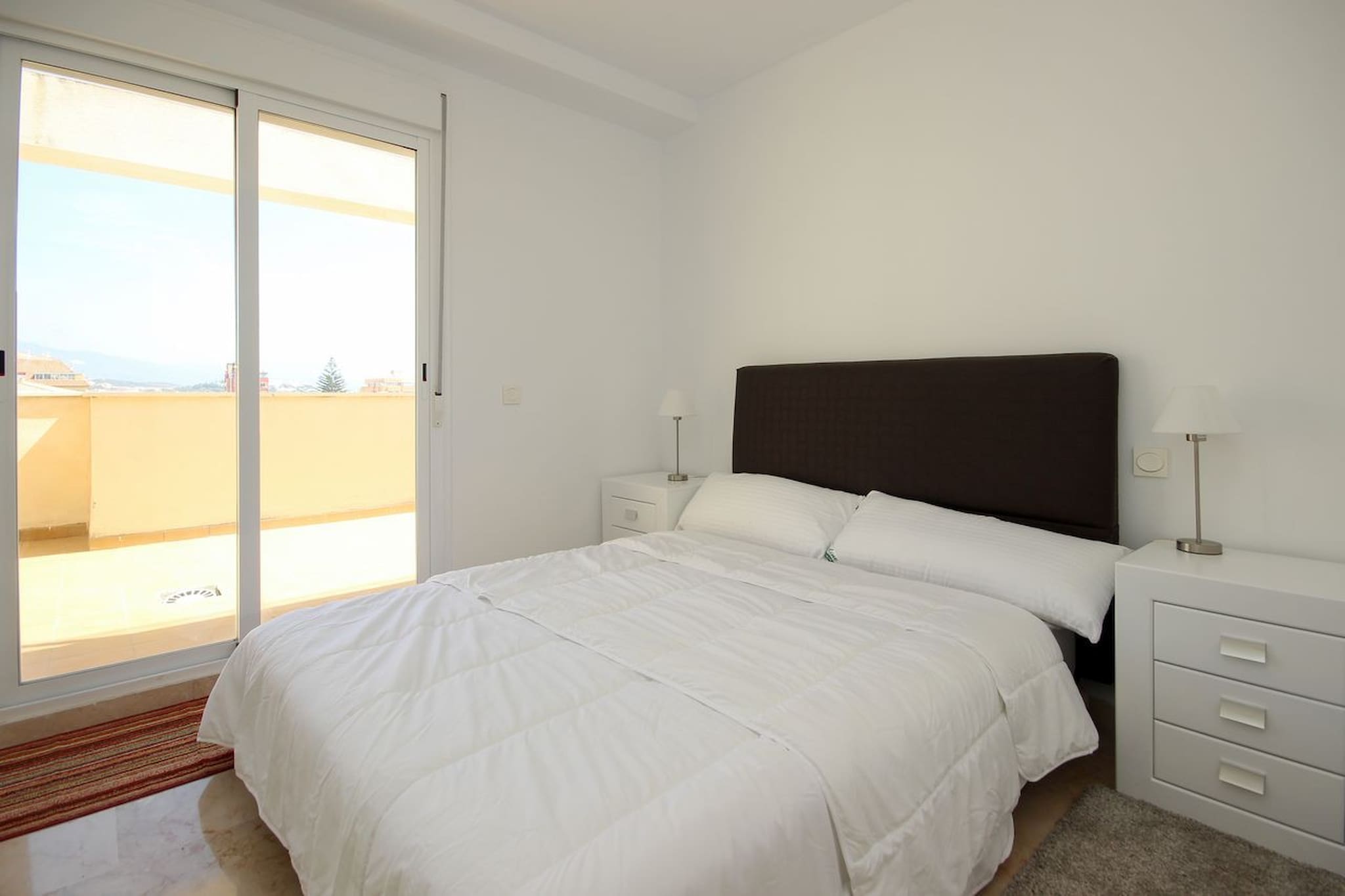 This property boasts a large terrace which wraps around the lounge/dining room and the master bedroom and second guest bedroom where you can relax on the sofa or armchairs, sunbathe on the two sun loungers or eat outside making use of the dining table and chairs while taking in the fabulous sea views.