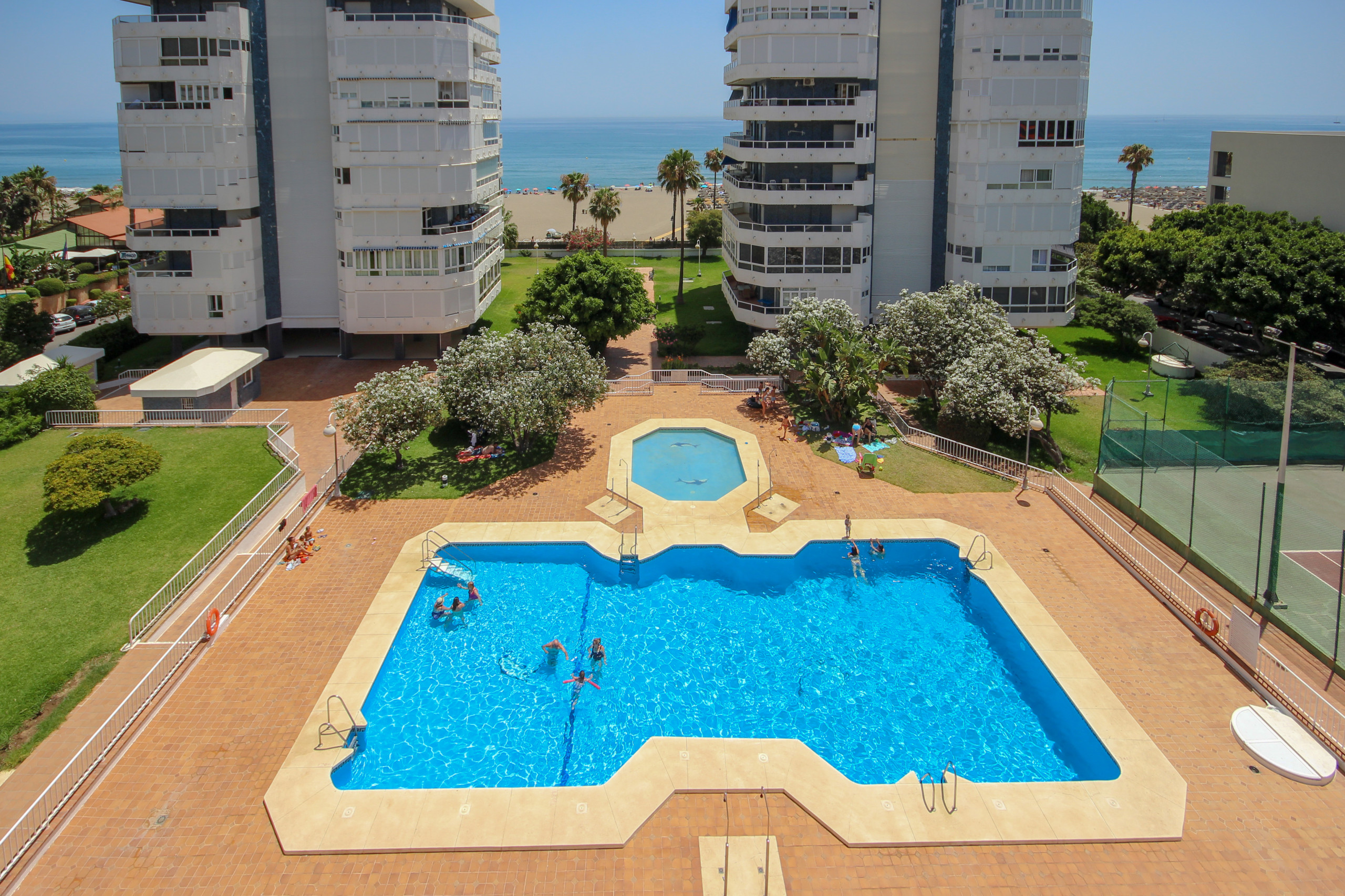 This lovely apartment is situated in the beach side complex of Pez Espada in Torremolinos. The complex offers a large swimming pool, gardens and a kids pool. The apartment comes with secure underground parking.