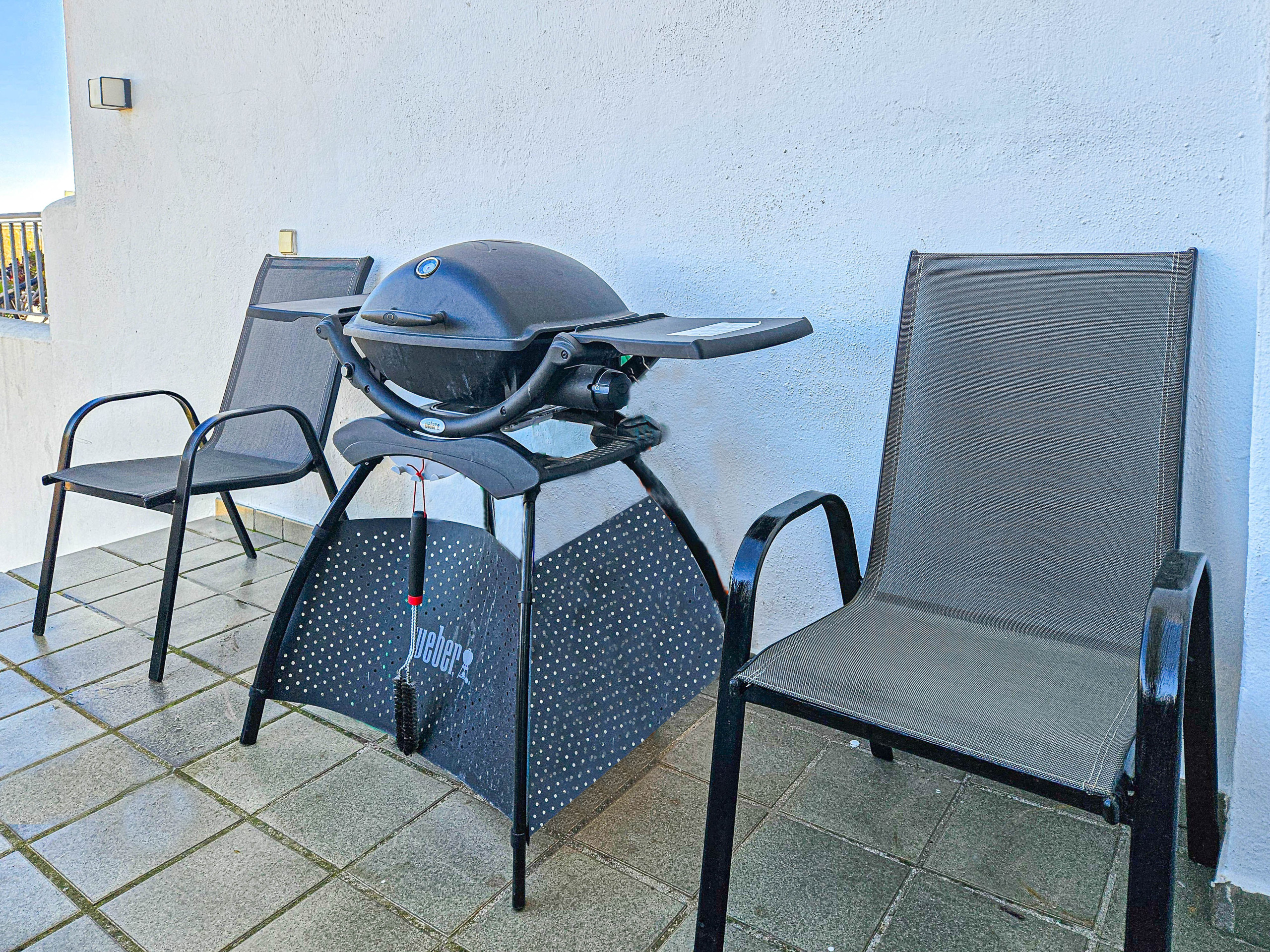 The townhouse is arranged over 2 floors and benefits from plenty of natural light flooding in from the patio doors and windows. The House is accessed via steps down from the communal area, there is also access through the garage leading out to the first floor. On the entrance level of the house there is a large hallway which leads into the spacious lounge/diner. The lounge area is fitted with a large corner sofa, TV, lounging chairs and gives access to the south-east facing terrace. The dining area is fitted with a dining table and chairs and also gives access to the terrace. The terrace is furnished with dining table and chairs, a BBQ, lounging chairs and terrace sofa and armchairs with matching coffee table. This terrace offers sensational views to the mountains and Mediterranean sea. The modern kitchen is fully equipped and benefits from a small breakfast area and access to the terrace. One of the bedrooms is on this floor and is furnished with a double bed and benefits from an en suite shower room and access to the terrace.