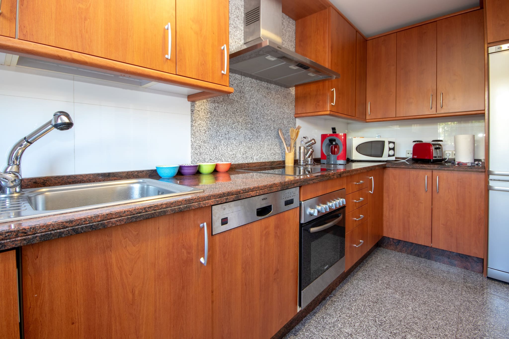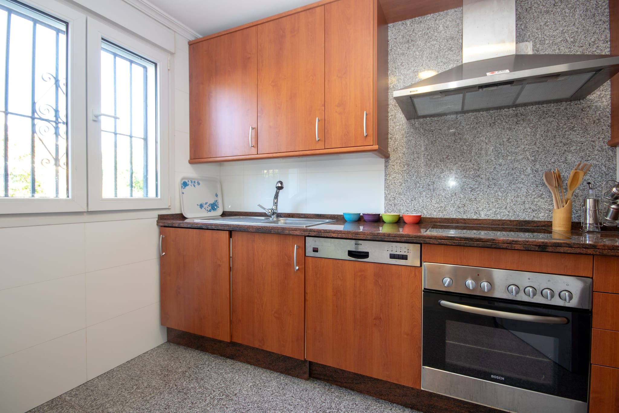 This spacious 3 storey townhouse is stylishly decorated in a contemporary, colour co-ordinated style and offers 3 terraces and a grassed garden leading directly onto the beach. On the ground floor the lounge is furnished with a double sofa bed, dining table and chairs and leads out onto the south facing terrace and garden furnished with a dining table and chairs and 3 sun loungers. The fully equipped kitchen and guest WC is also located on this floor.