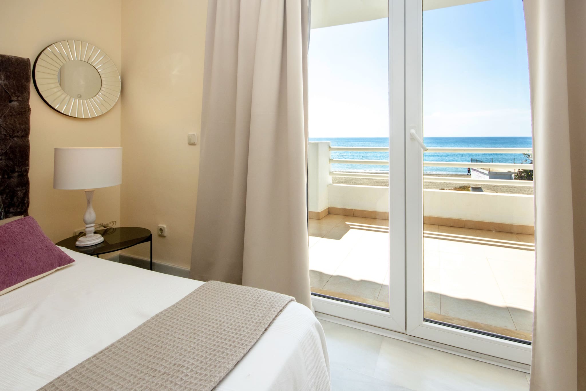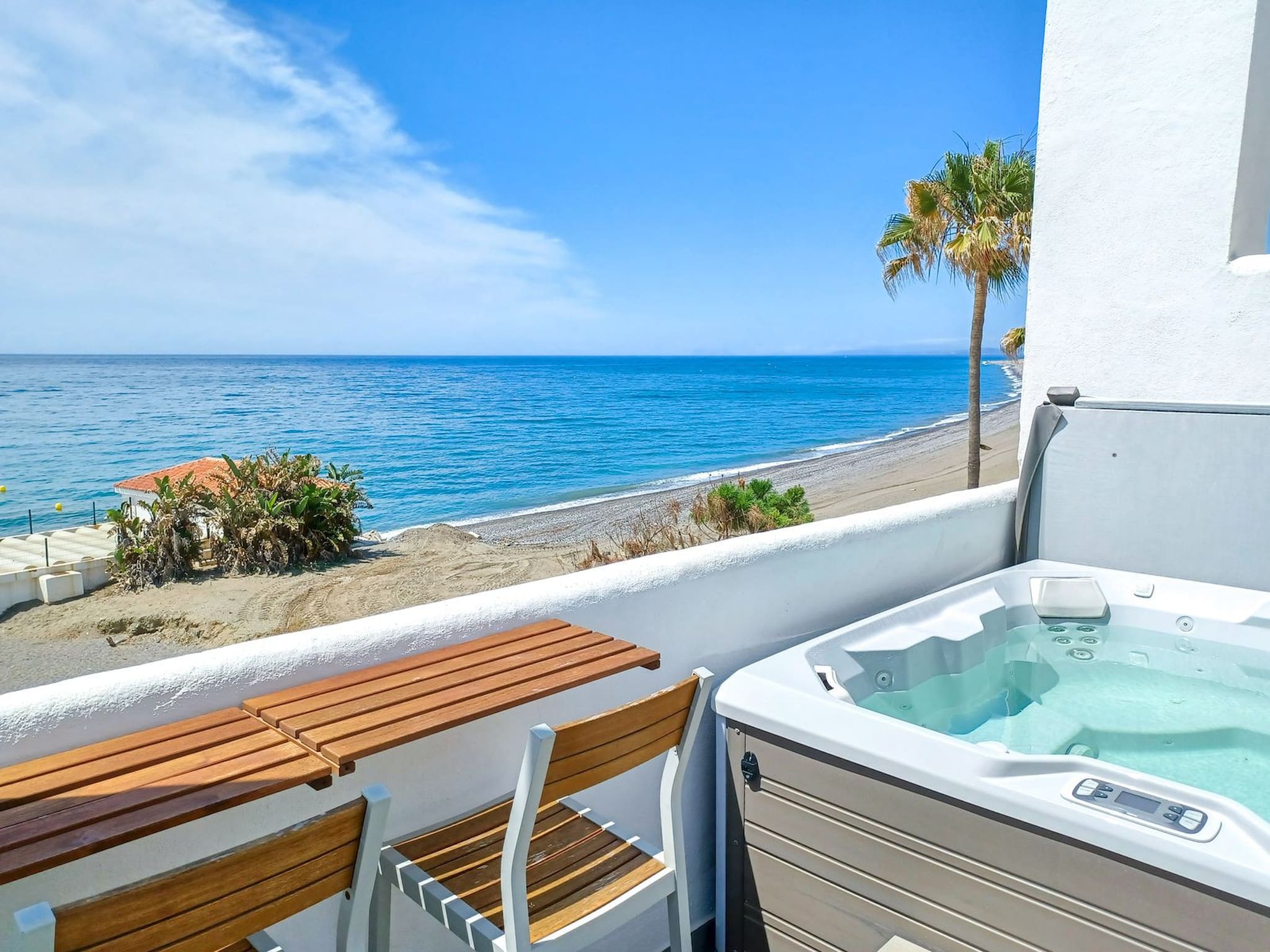 This stunning, quality 3 bedroom townhouse is situated in the beach front complex of Belen Beach 1. The garden leads directly onto the beach offering stunning coastal views. Within a few minutes walk there is a beach restaurant and the complex is close to many restaurants, bars and a mini market. The complex offers easy access to the A7 and is only a few minutes drive to Puerto Banus to the east and Estepona to the west.