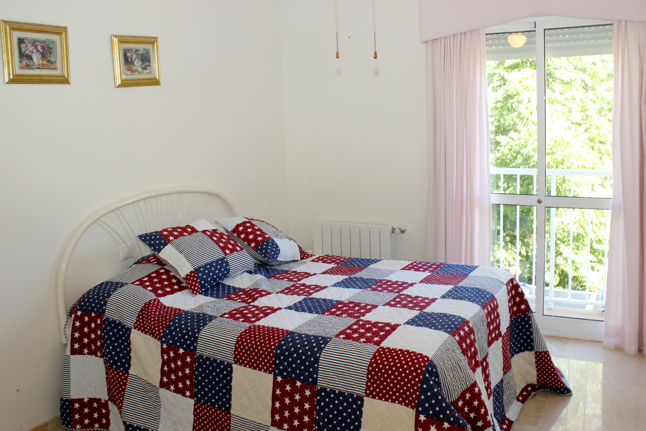 Up the stairs to the first floor and bedroom level. The master bedroom is furnished with a king size bed and has fitted wardrobes and benefits from a full en suite bathroom. This bedroom is also fitted with an A/C unit. The second bedroom is furnished with a large double bed and has fitted wardrobes. The third bedroom has twin beds and has fitted wardrobes and a balcony. The two guest bedrooms have use of a second bathroom fitted with a bath with shower attachment. The house has central heating through.