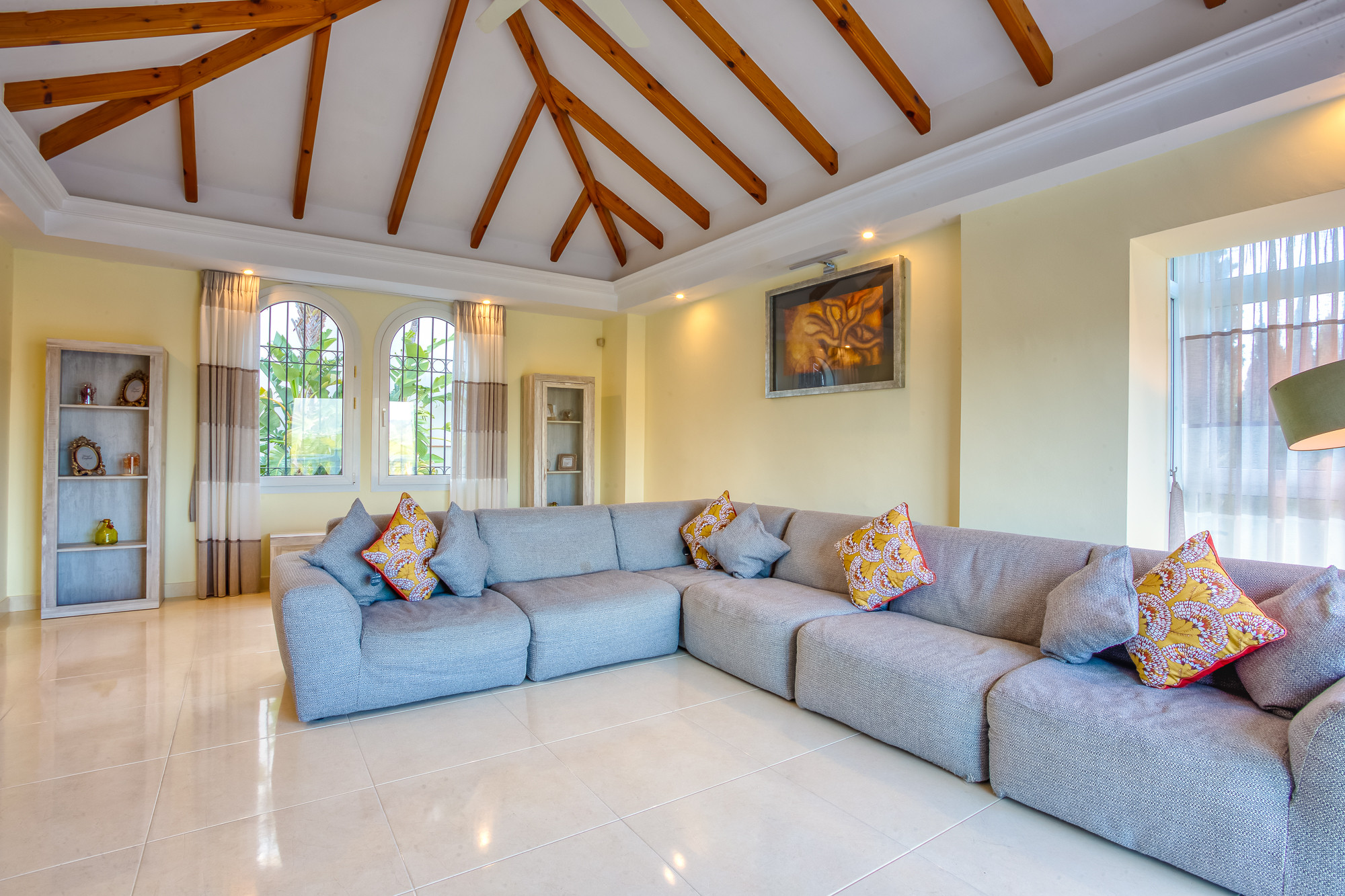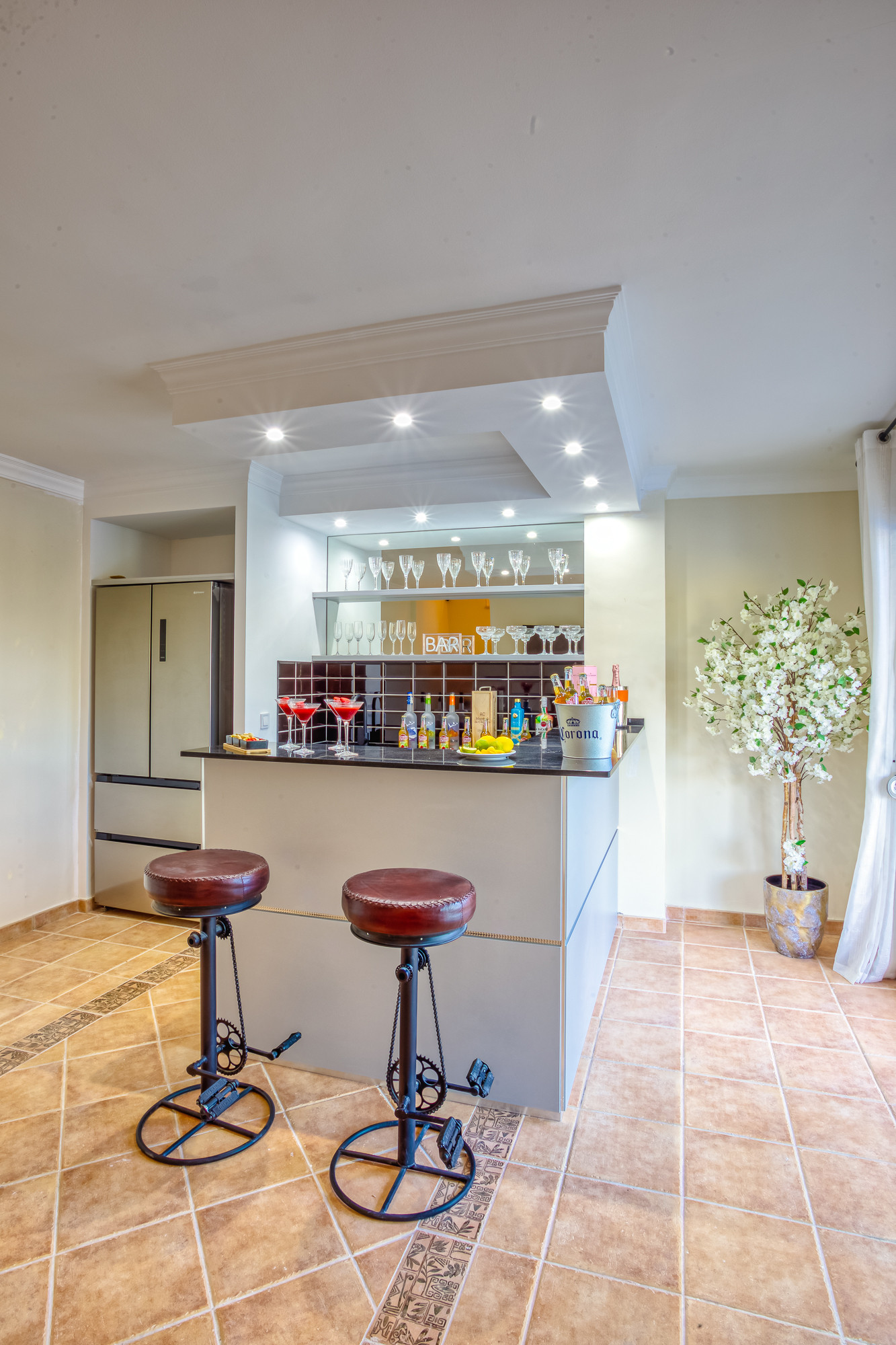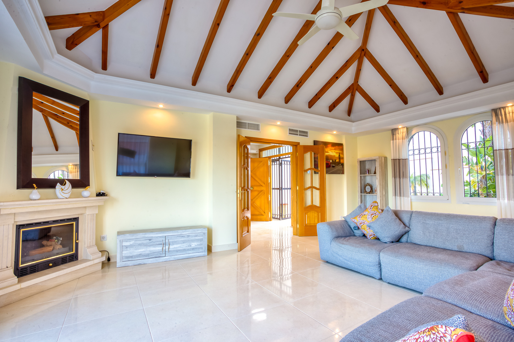 The villa in Mijas Costa has 4 bedrooms and has capacity for 8 people. The villa is tastefully-furnished, is modern. It has views of the garden and the swimming pool. The property is located 650 m from El Muro the restaurant, 3 km from The Food Co. British cupermarket supermarket, 4 km from Playa Fuengirola sand beach, 5 km from Fuengirola city, 8 km from Mijas Golf International SAU golf course, 22 km from Malaga airport. The house is situated in a family-friendly neighborhood in a beautiful rural area.The accommodation is equipped with the following items: garden, garden furniture, fenced garden, terrace, washing machine, dryer, barbecue, iron, safe, internet (Wi-Fi), hair dryer, alarm, central heating, air conditioning throughout the house, private swimming pool, open-air parking, 5 TVs.In the induction independent kitchen, refrigerator, microwave, oven, freezer, dishwasher, dishes/cutlery, kitchen utensils, coffee machine, toaster and kettle are provided.