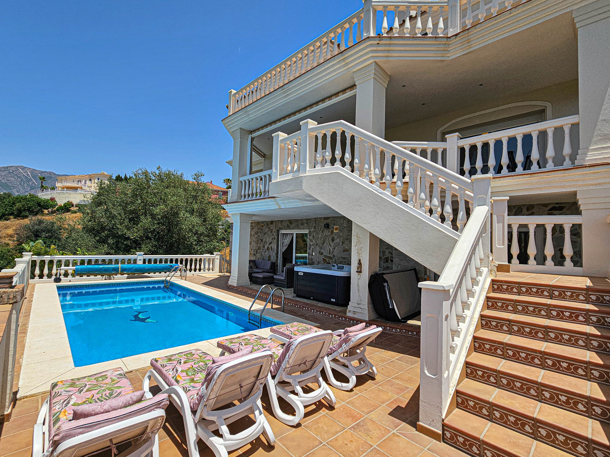This beautiful four bedroom villa is set in the residential area of Sierrazuela, in Mijas Costa. The property offers the serenity of rural living, although the beach, Fuengirola town and Mijas Golf Course are only 4km away. Whilst located in a quiet area, there are restaurants, bars and shops just over 1km away. The villa offers a private pool, lawned garden, hot and cold aircon units in the lounge and bedrooms, a cot & highchair and free WIFI.