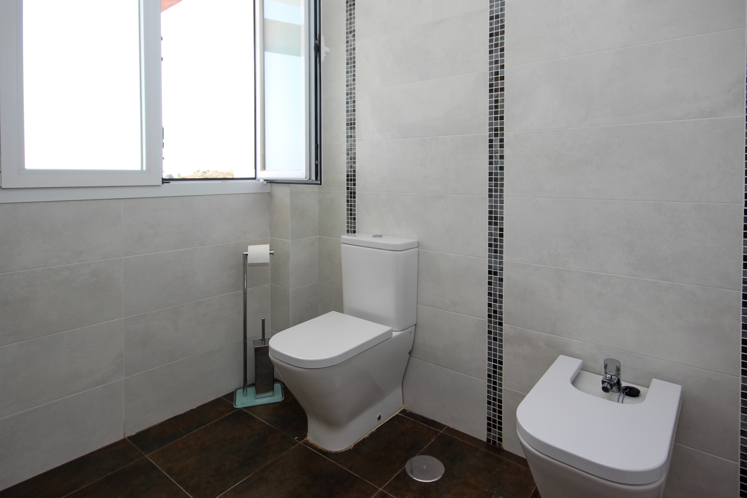 There are two bedrooms located on the ground floor. Both bedrooms offer a super king size bed, ensuite bathrooms, fitted wardrobes and shutters. The spacious master bedroom also offers a cot and benefits from direct access onto the covered terrace, pool and garden. The master ensuite bathroom is fitted with a bath with a shower attachment, a separate shower cubicle, a bidet and double sinks. The second bedroom offers an ensuite shower room. There is also a WC on this level. Two further guest bedrooms can be found on the first floor. Both spacious bedrooms are furnished with twin beds, fitted wardrobes and shutters. There is also a guest bathroom on this level, fitted with a bath with a shower attachment.