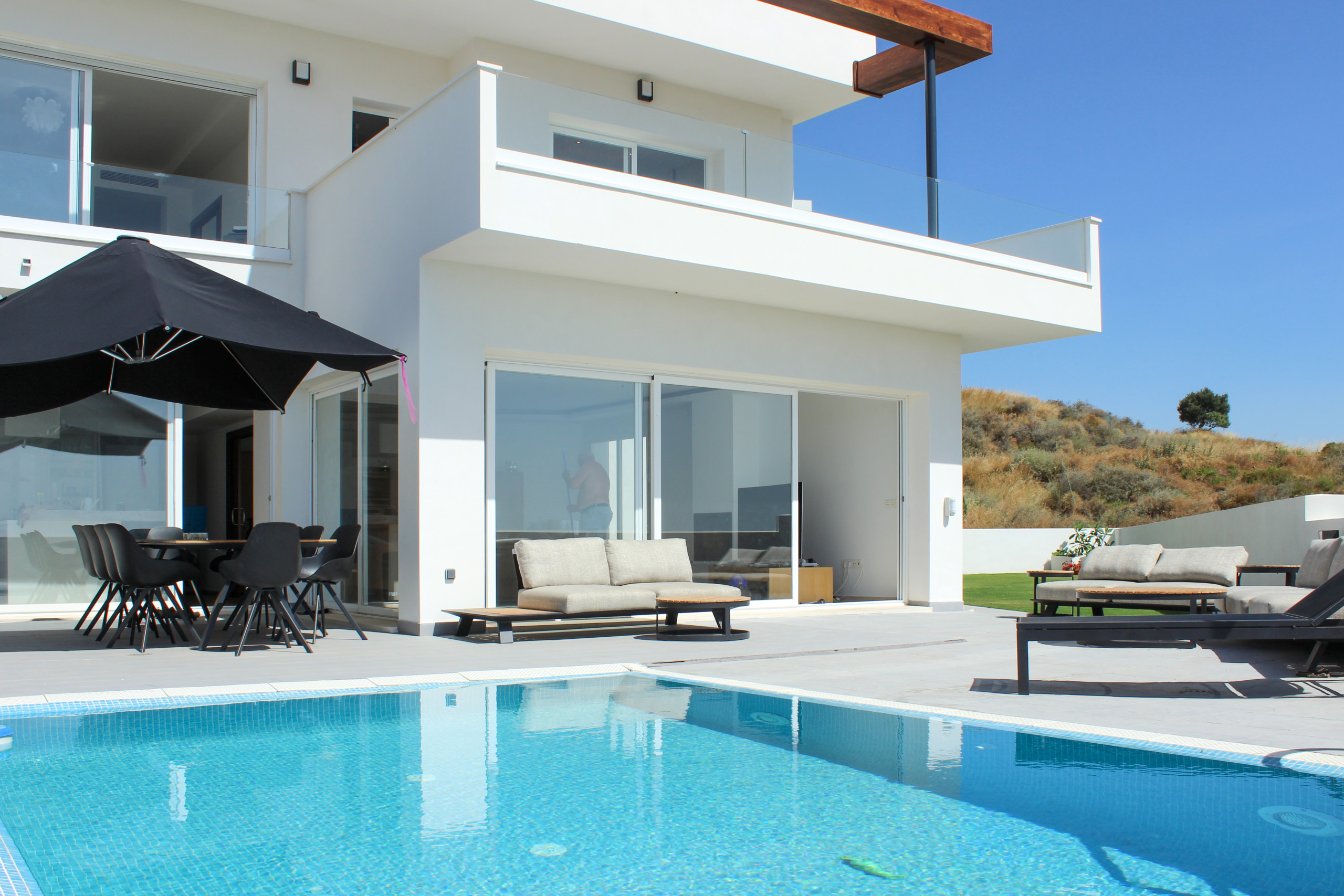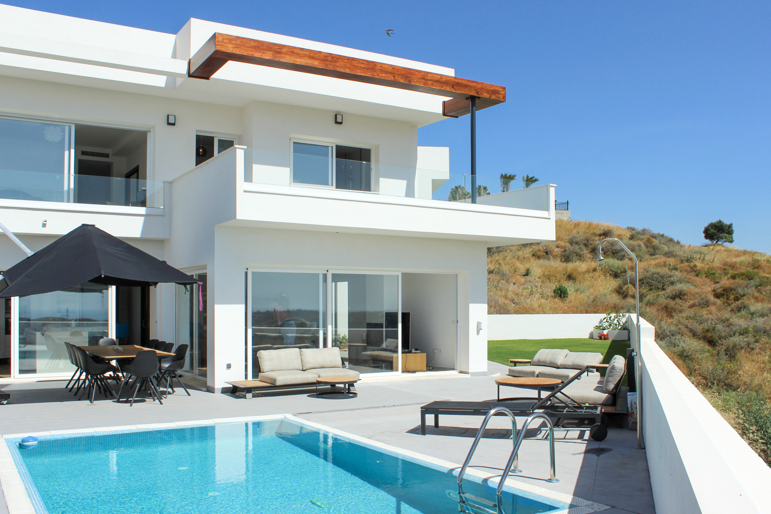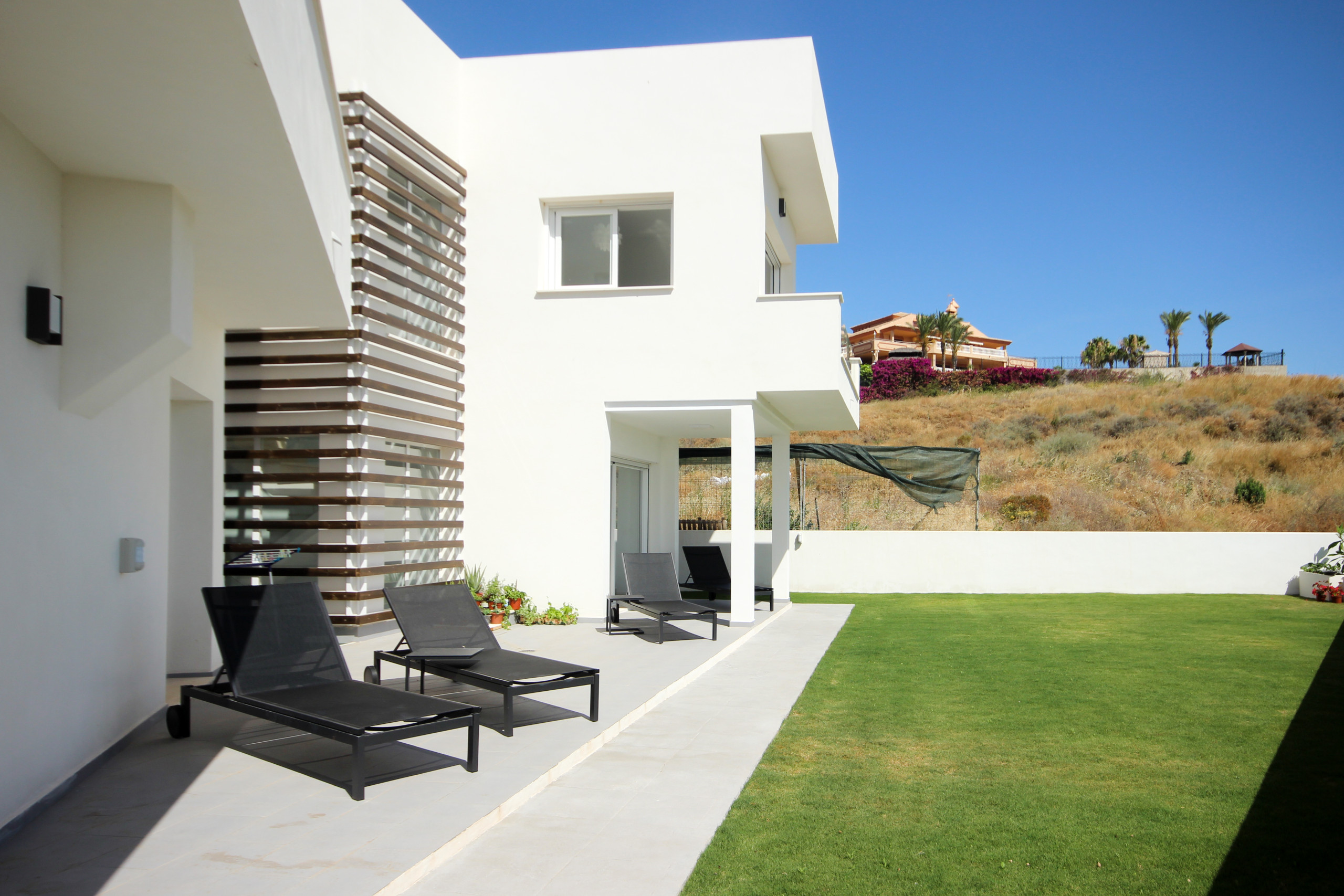 The villa in Mijas Costa has 4 bedrooms and has capacity for 8 people. The villa is tastefully-furnished, is modern. It has views of the garden and the swimming pool. The property is located 650 m from El Muro the restaurant, 3 km from The Food Co. British cupermarket supermarket, 4 km from Playa Fuengirola sand beach, 5 km from Fuengirola city, 8 km from Mijas Golf International SAU golf course, 22 km from Malaga airport. The house is situated in a family-friendly neighborhood in a beautiful rural area.The accommodation is equipped with the following items: garden, garden furniture, fenced garden, terrace, washing machine, dryer, barbecue, iron, safe, internet (Wi-Fi), hair dryer, alarm, central heating, air conditioning throughout the house, private swimming pool, open-air parking, 5 TVs.In the induction independent kitchen, refrigerator, microwave, oven, freezer, dishwasher, dishes/cutlery, kitchen utensils, coffee machine, toaster and kettle are provided.