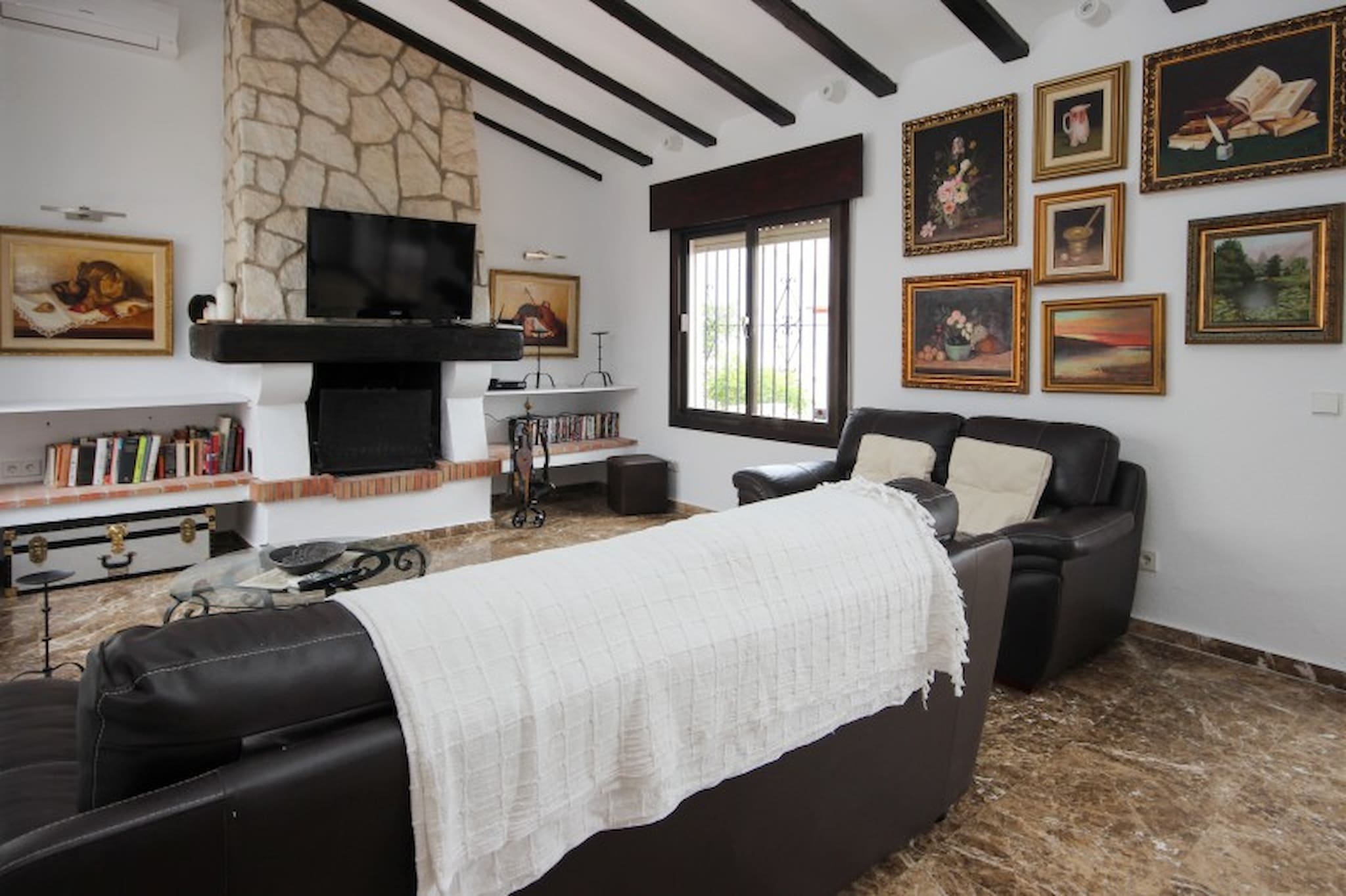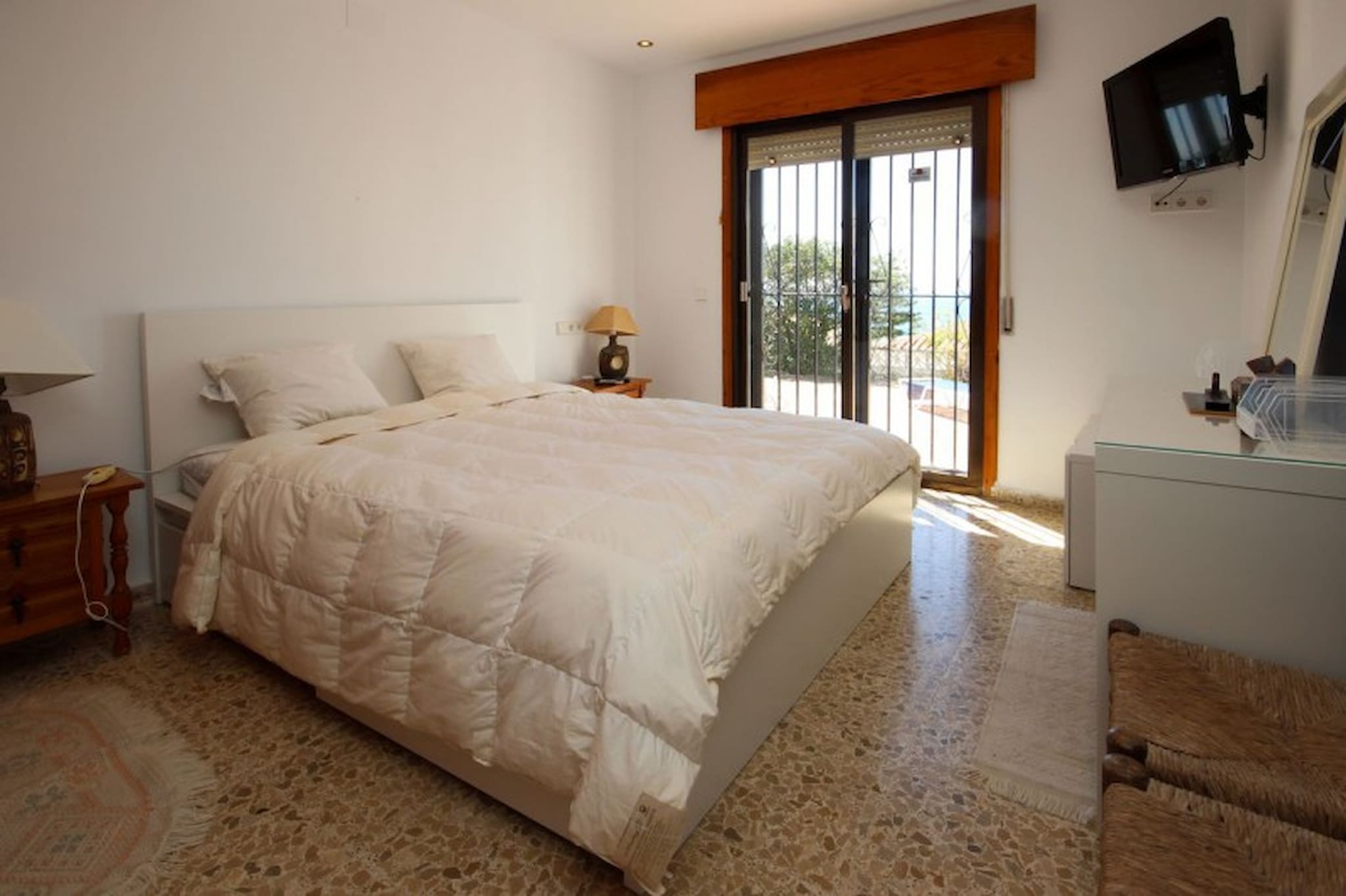 This charming villa is complete with a small, cortijo-style inner courtyard and includes A/C units in the lounge and bedrooms and WiFi. Enter the gate and you are immediately taken in by the panoramic views to the sea. The large dining area is furnished with solid wood dining table and chairs and leads down to the spacious lounge area. The lounge is fitted with sofas and a large TV. Views to the sea can been seen from all windows and the lounge area leads directly onto the terrace, garden and pool area.