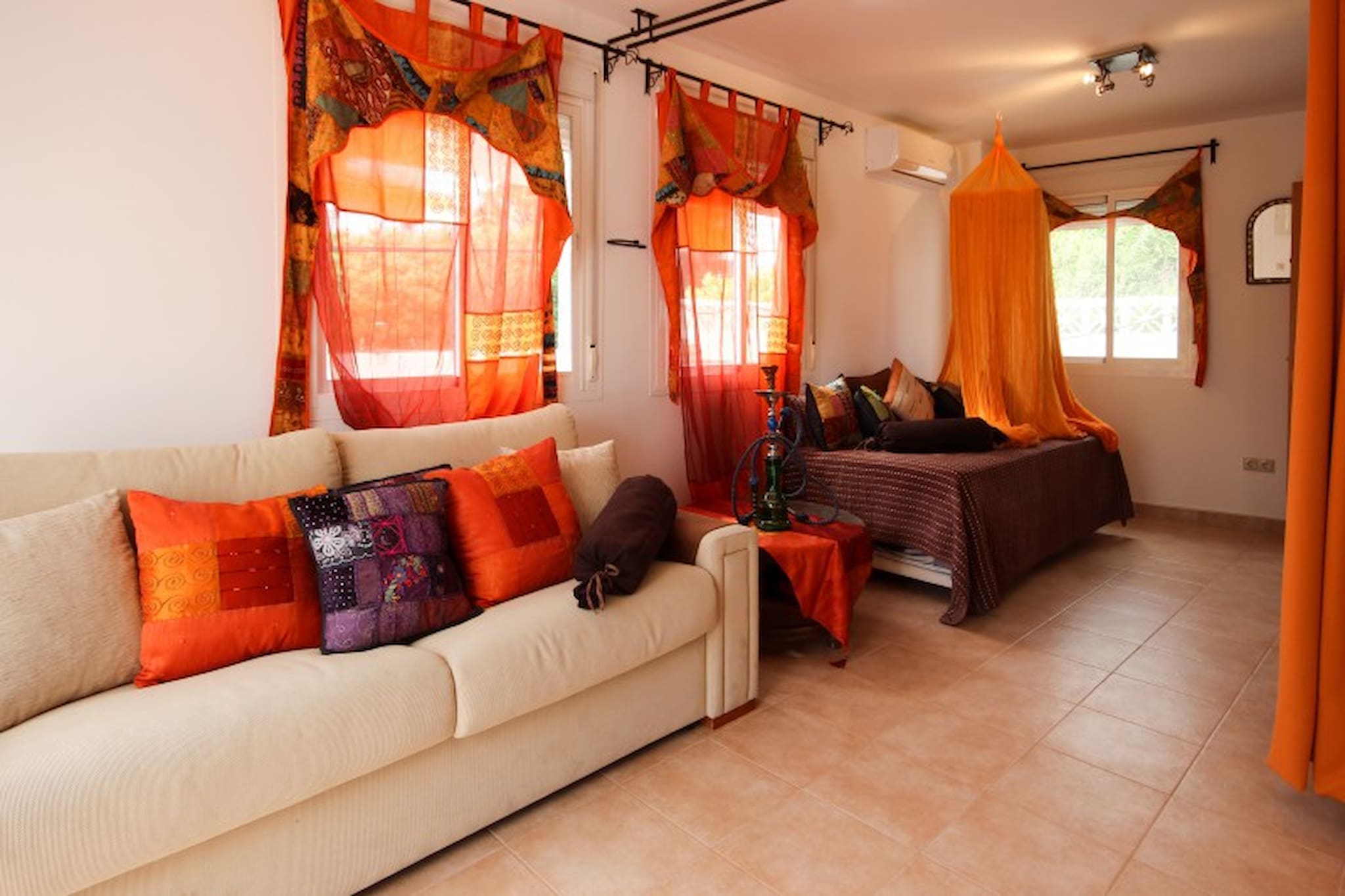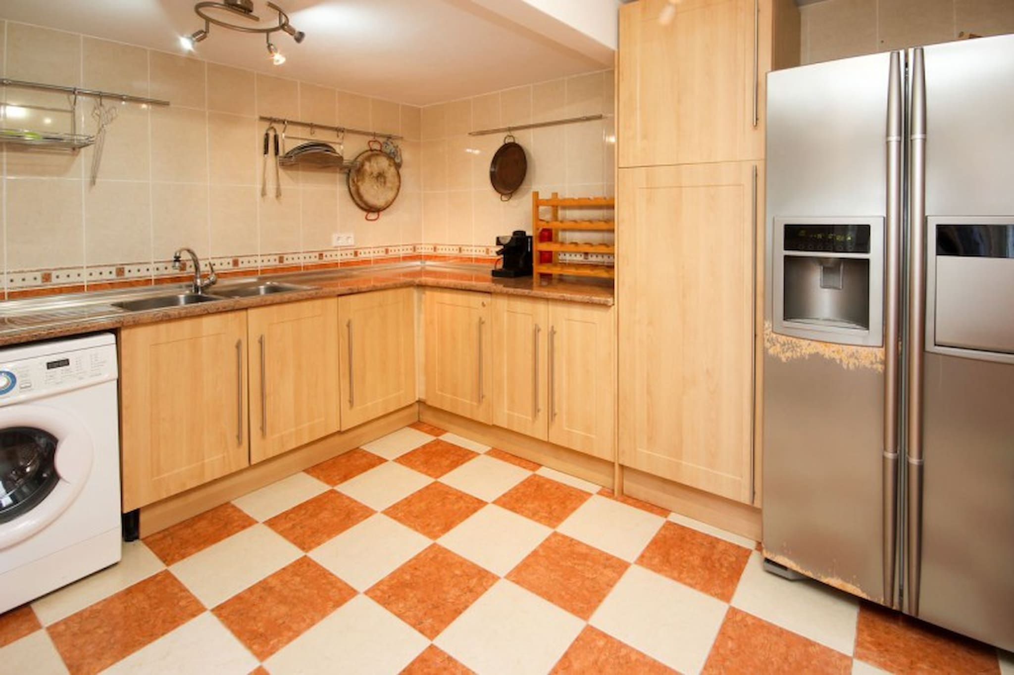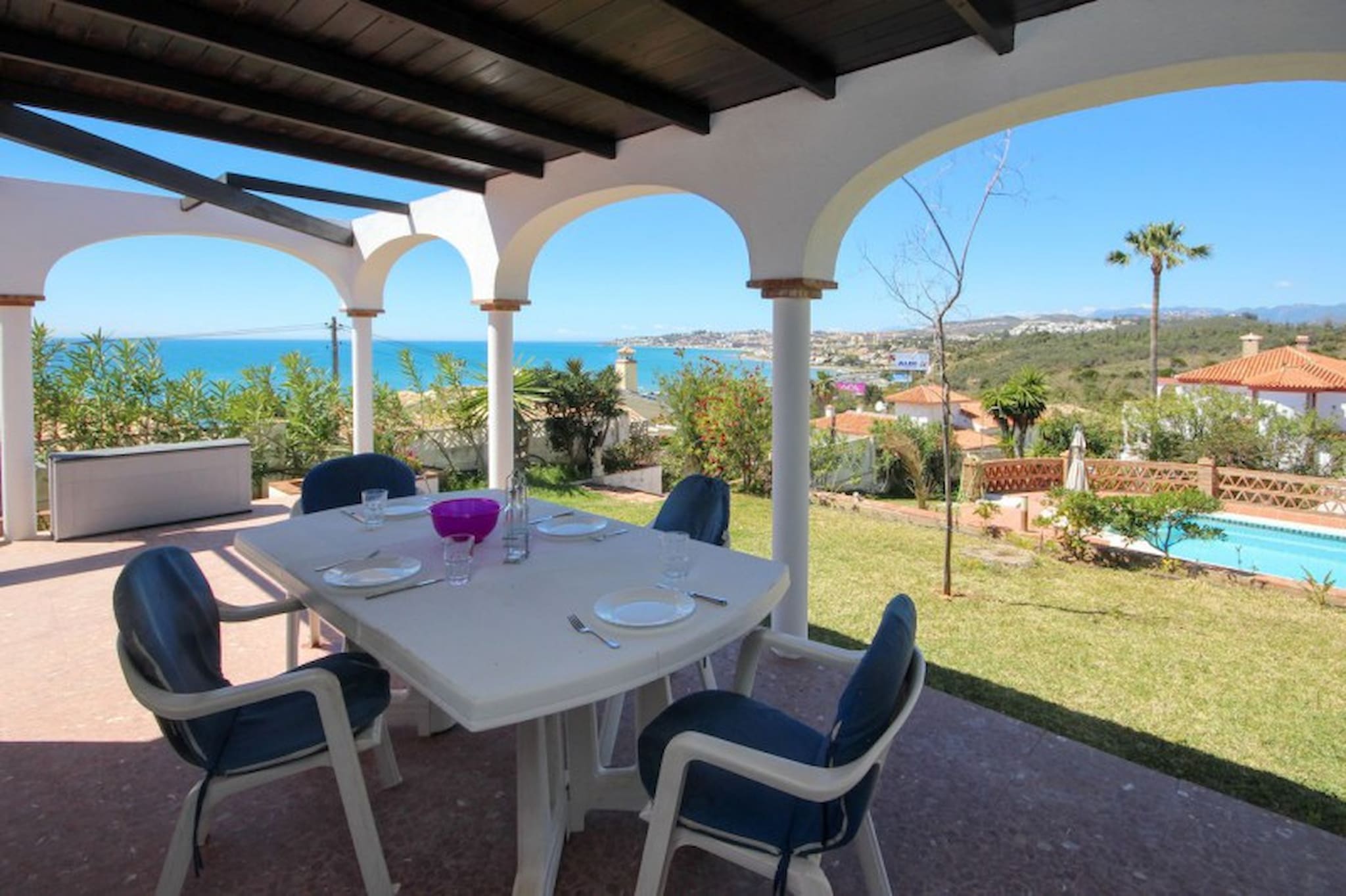 The villa in Mijas Costa has 4 bedrooms and has capacity for 8 people. The villa is tastefully-furnished, is modern. It has views of the garden and the swimming pool. The property is located 650 m from El Muro the restaurant, 3 km from The Food Co. British cupermarket supermarket, 4 km from Playa Fuengirola sand beach, 5 km from Fuengirola city, 8 km from Mijas Golf International SAU golf course, 22 km from Malaga airport. The house is situated in a family-friendly neighborhood in a beautiful rural area.The accommodation is equipped with the following items: garden, garden furniture, fenced garden, terrace, washing machine, dryer, barbecue, iron, safe, internet (Wi-Fi), hair dryer, alarm, central heating, air conditioning throughout the house, private swimming pool, open-air parking, 5 TVs.In the induction independent kitchen, refrigerator, microwave, oven, freezer, dishwasher, dishes/cutlery, kitchen utensils, coffee machine, toaster and kettle are provided.